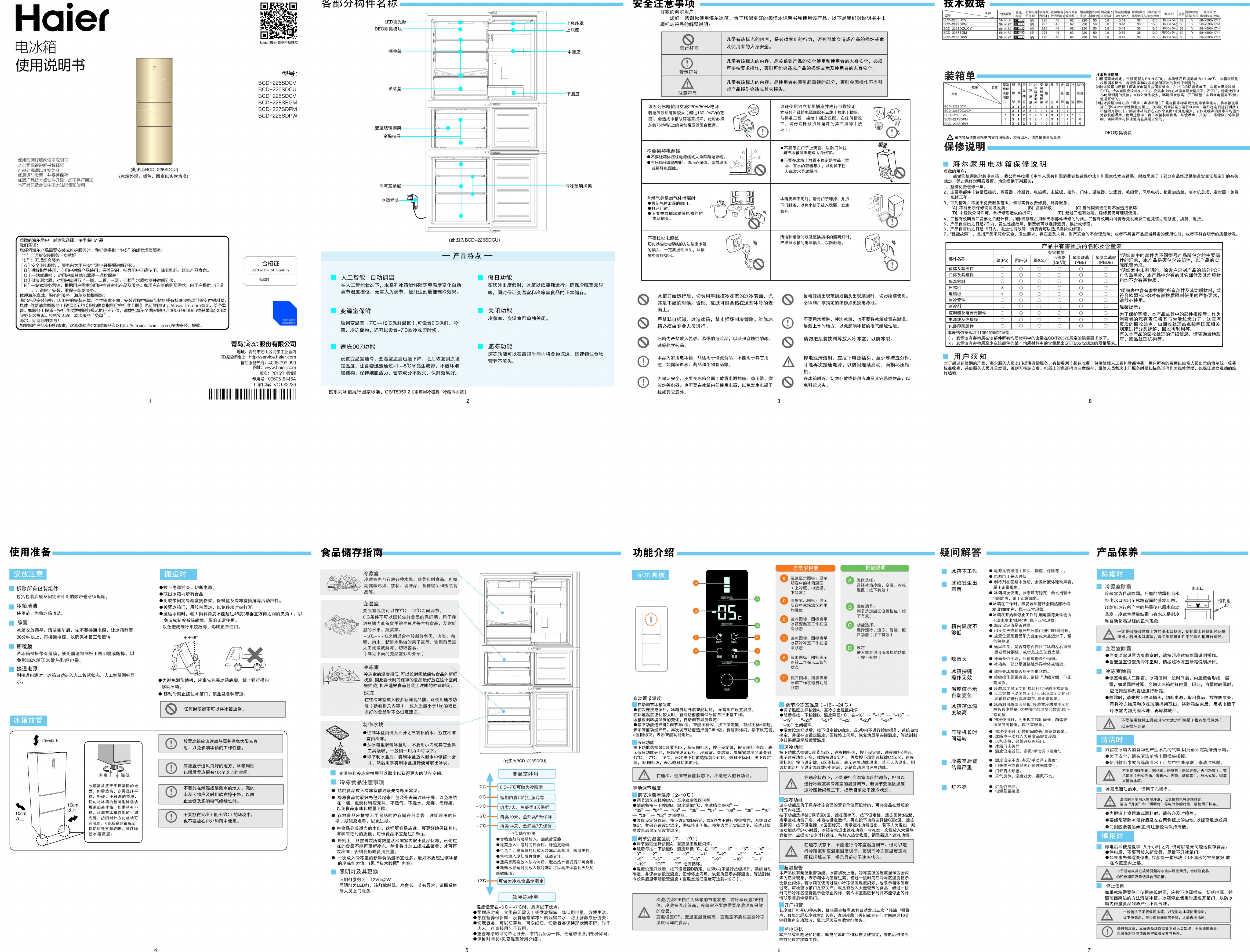Hier is de Haier BCD-228SDPW (Koelkast) gebruikershandleiding. 2 pagina's in taal Engels met een gewicht van 1.9 Mb. Als u geen antwoorden op uw probleem kunt vinden Vraag het onze community.