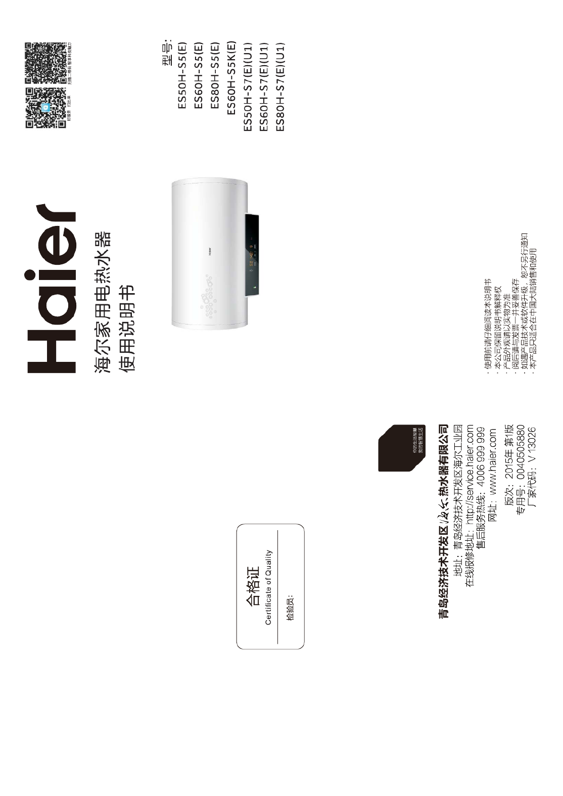 Hier is de Haier ES60H-S5K(E) (Ketel & boiler) gebruikershandleiding. 16 pagina's in taal Engels met een gewicht van 2.8 Mb. Als u geen antwoorden op uw probleem kunt vinden Vraag het onze community.