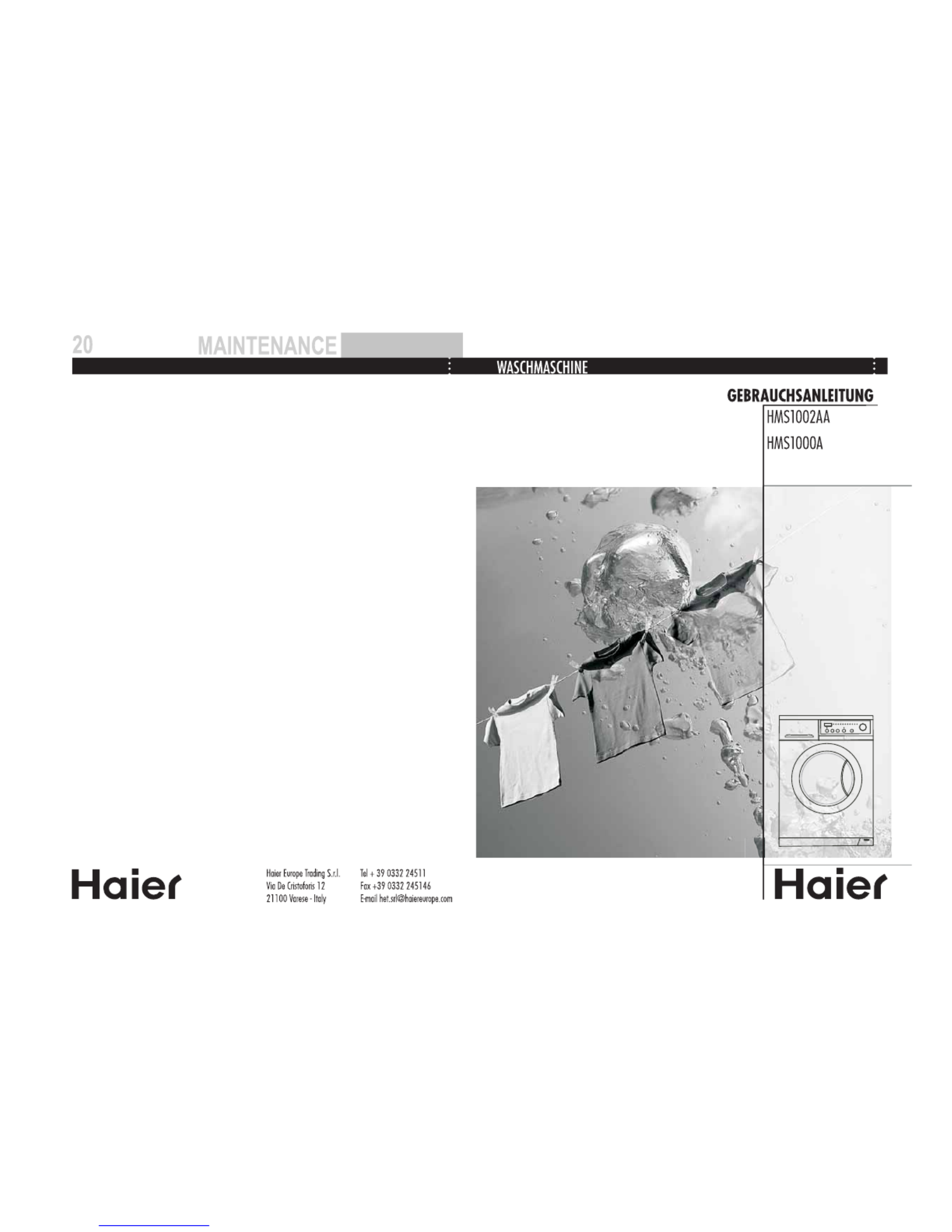 Hier is de Haier HMS1002AA (Wasmachine) gebruikershandleiding. 20 pagina's in taal Engels met een gewicht van 2.7 Mb. Als u geen antwoorden op uw probleem kunt vinden Vraag het onze community.