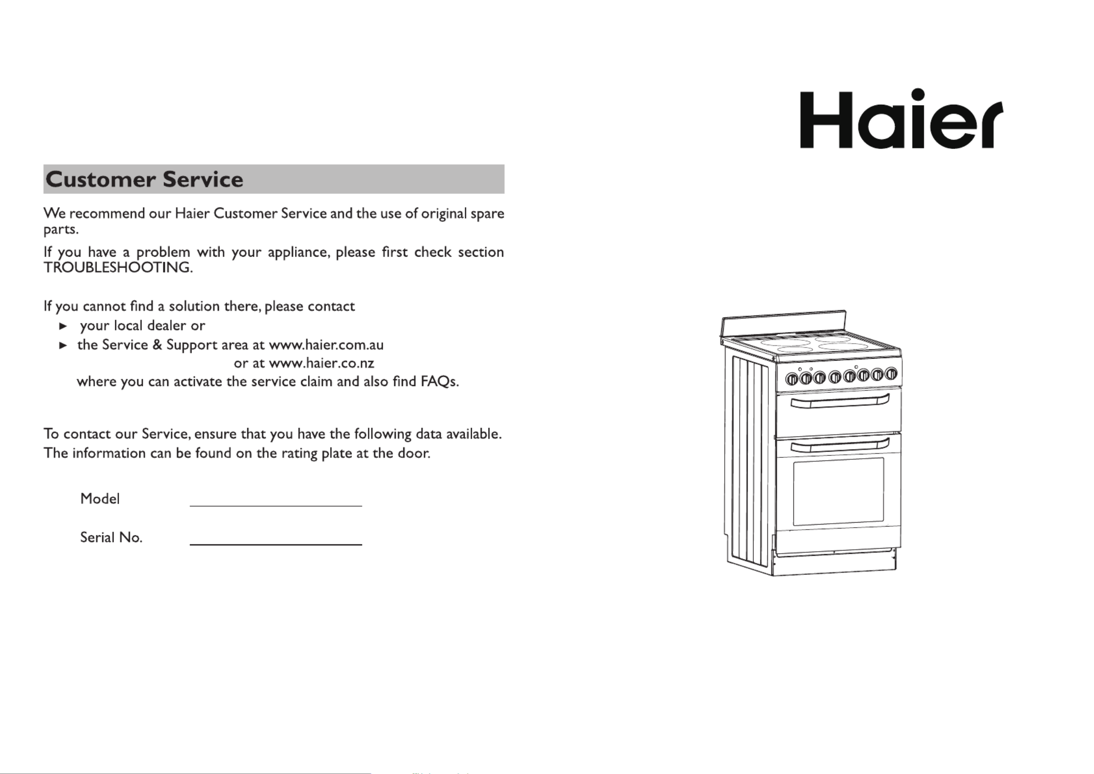 Hier is de Haier HOR54B7MSW1 (Fornuis) gebruikershandleiding. 12 pagina's in taal Engels met een gewicht van 1.5 Mb. Als u geen antwoorden op uw probleem kunt vinden Vraag het onze community.