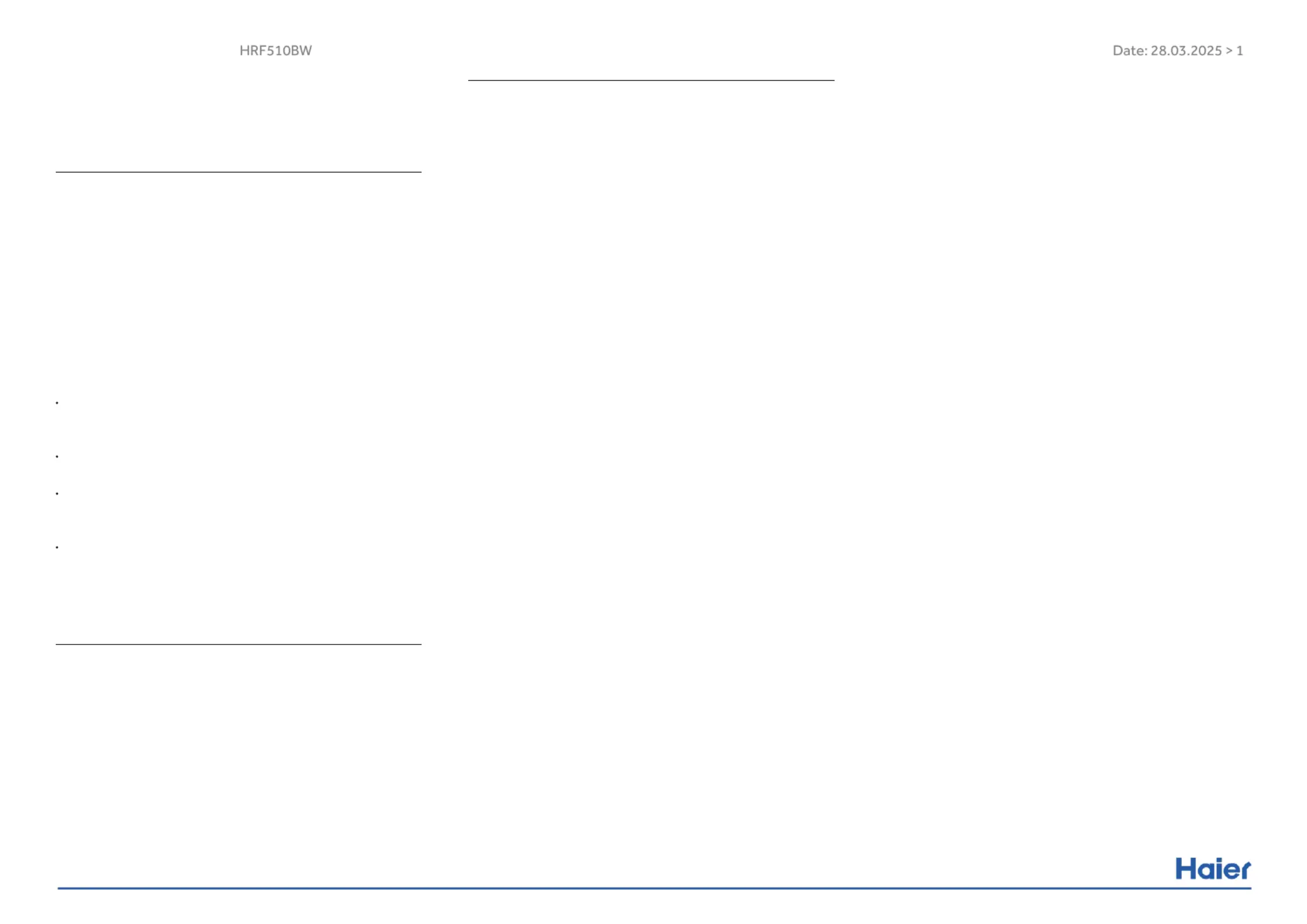 Hier is de Haier HRF510BW (Koelkast) gebruikershandleiding. 2 pagina's in taal Engels met een gewicht van 236,962.0 Mb. Als u geen antwoorden op uw probleem kunt vinden Vraag het onze community.