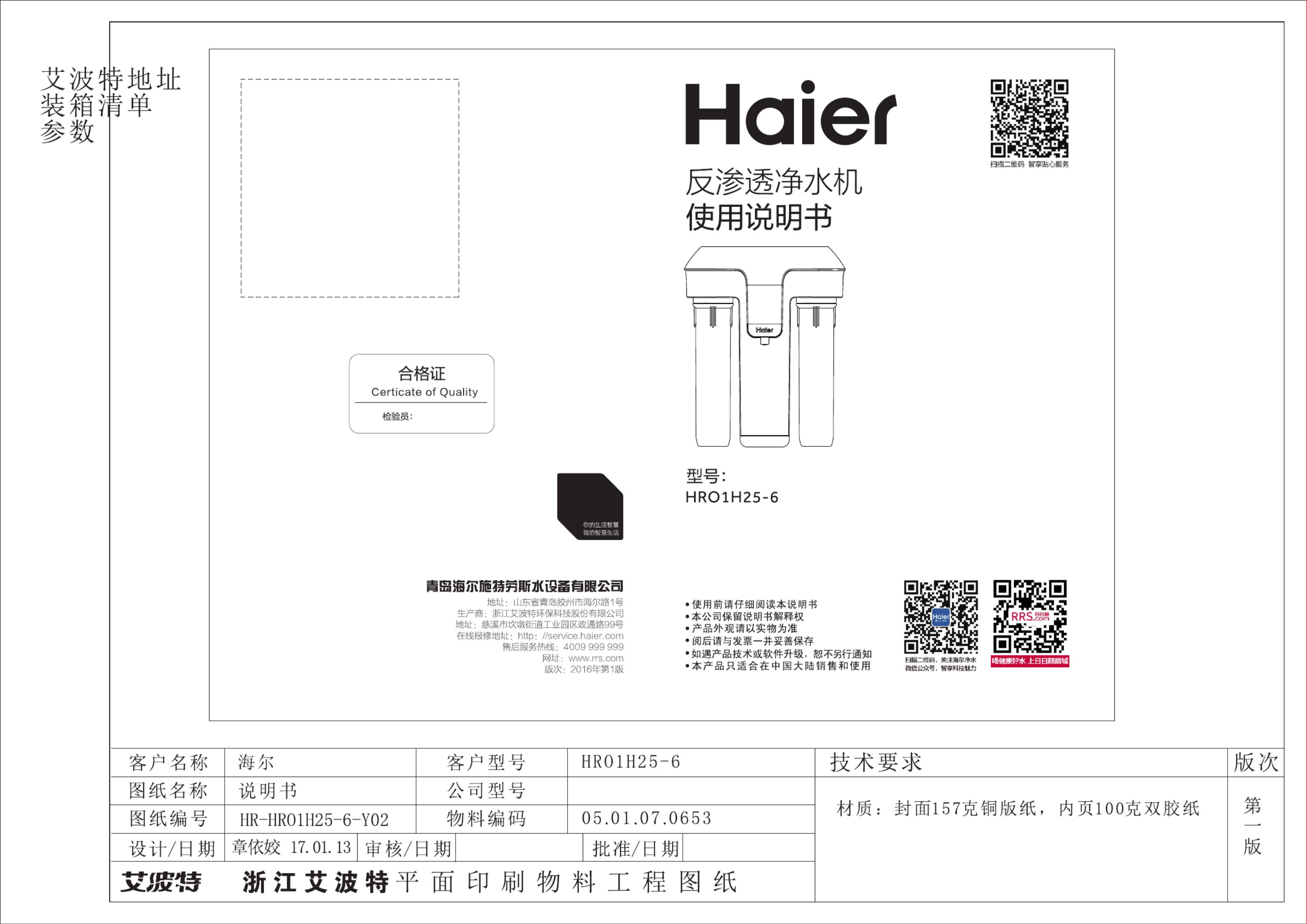 Hier is de Haier HRO1H25-6 (Waterfilter) gebruikershandleiding. 10 pagina's in taal Engels met een gewicht van 1.6 Mb. Als u geen antwoorden op uw probleem kunt vinden Vraag het onze community.