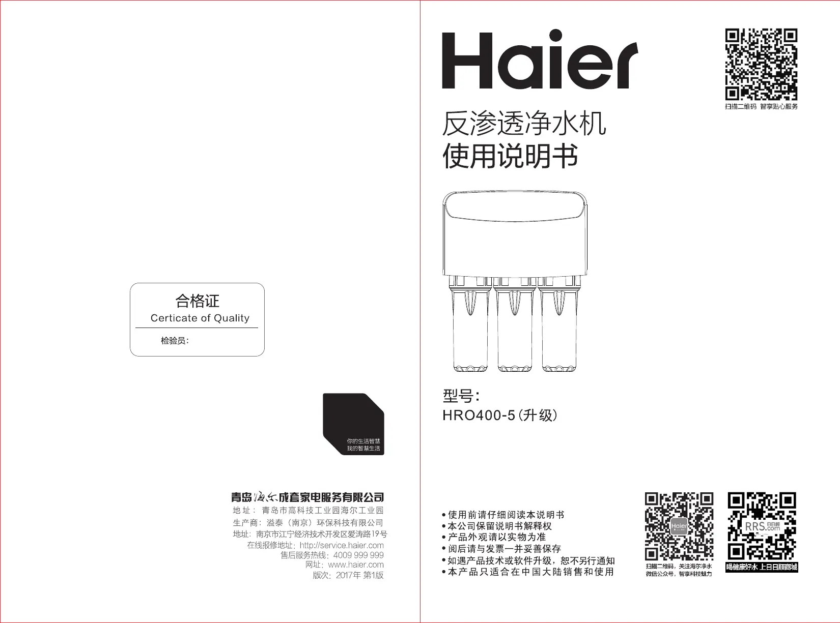 Hier is de Haier HRO400-5 (Waterfilter) gebruikershandleiding. 10 pagina's in taal Nederlands met een gewicht van 1,641,490.0 Mb. Als u geen antwoorden op uw probleem kunt vinden Vraag het onze community.
