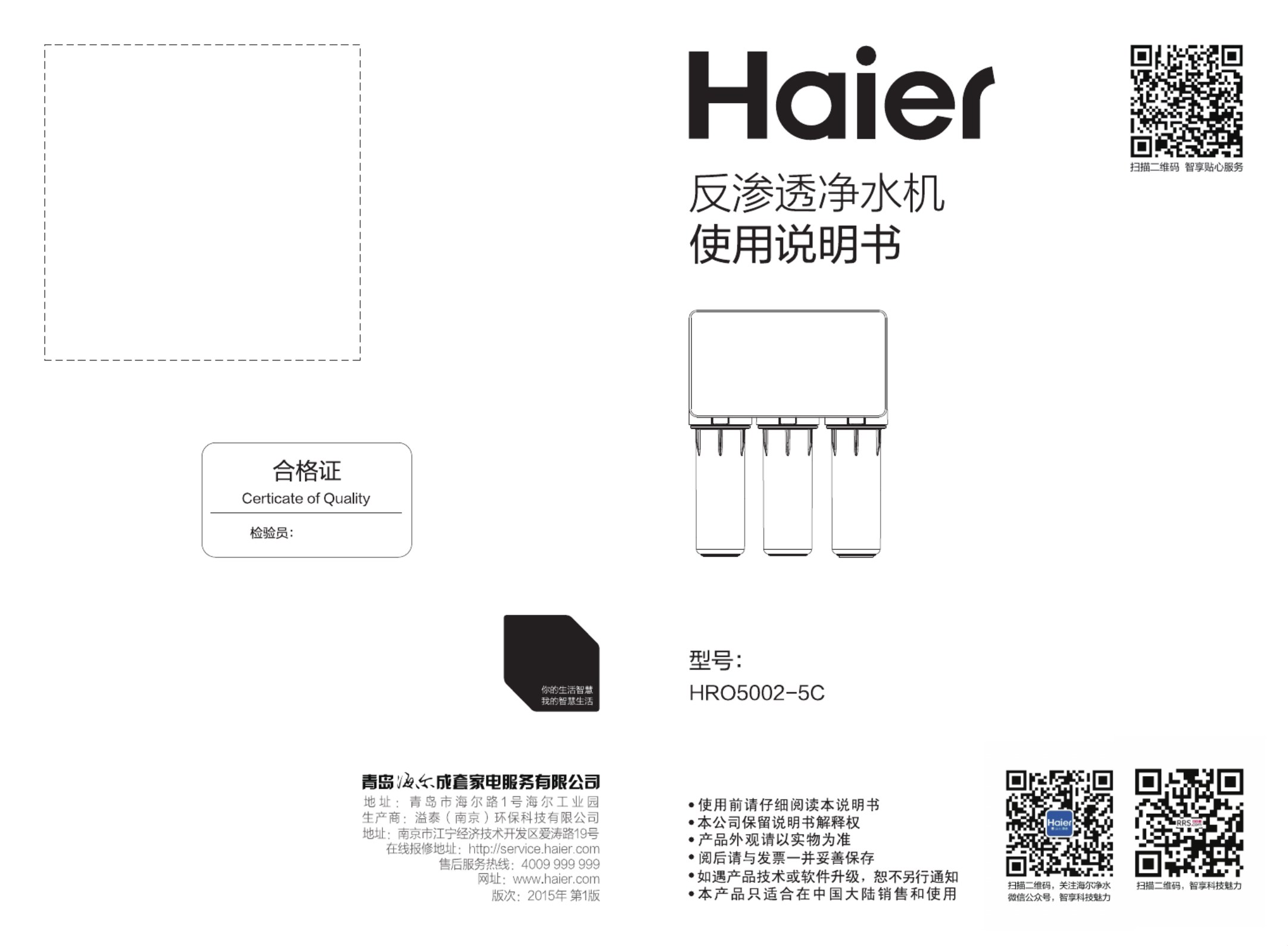 Hier is de Haier HRO5002-5C (Waterfilter) gebruikershandleiding. 16 pagina's in taal Nederlands met een gewicht van 1.4 Mb. Als u geen antwoorden op uw probleem kunt vinden Vraag het onze community.