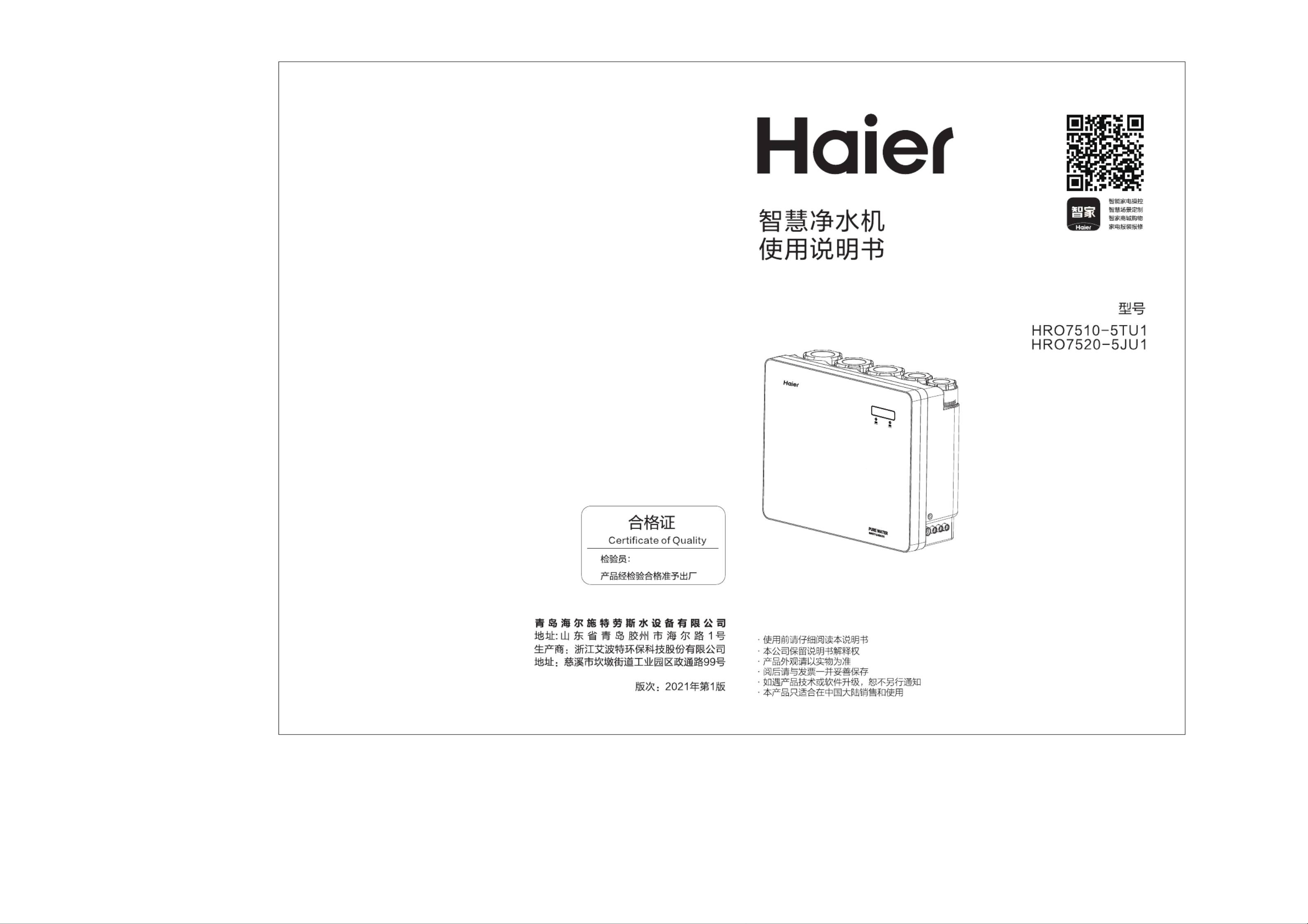 Hier is de Haier HRO7510-5TU1 (Waterfilter) gebruikershandleiding. 10 pagina's in taal Nederlands met een gewicht van 1.7 Mb. Als u geen antwoorden op uw probleem kunt vinden Vraag het onze community.