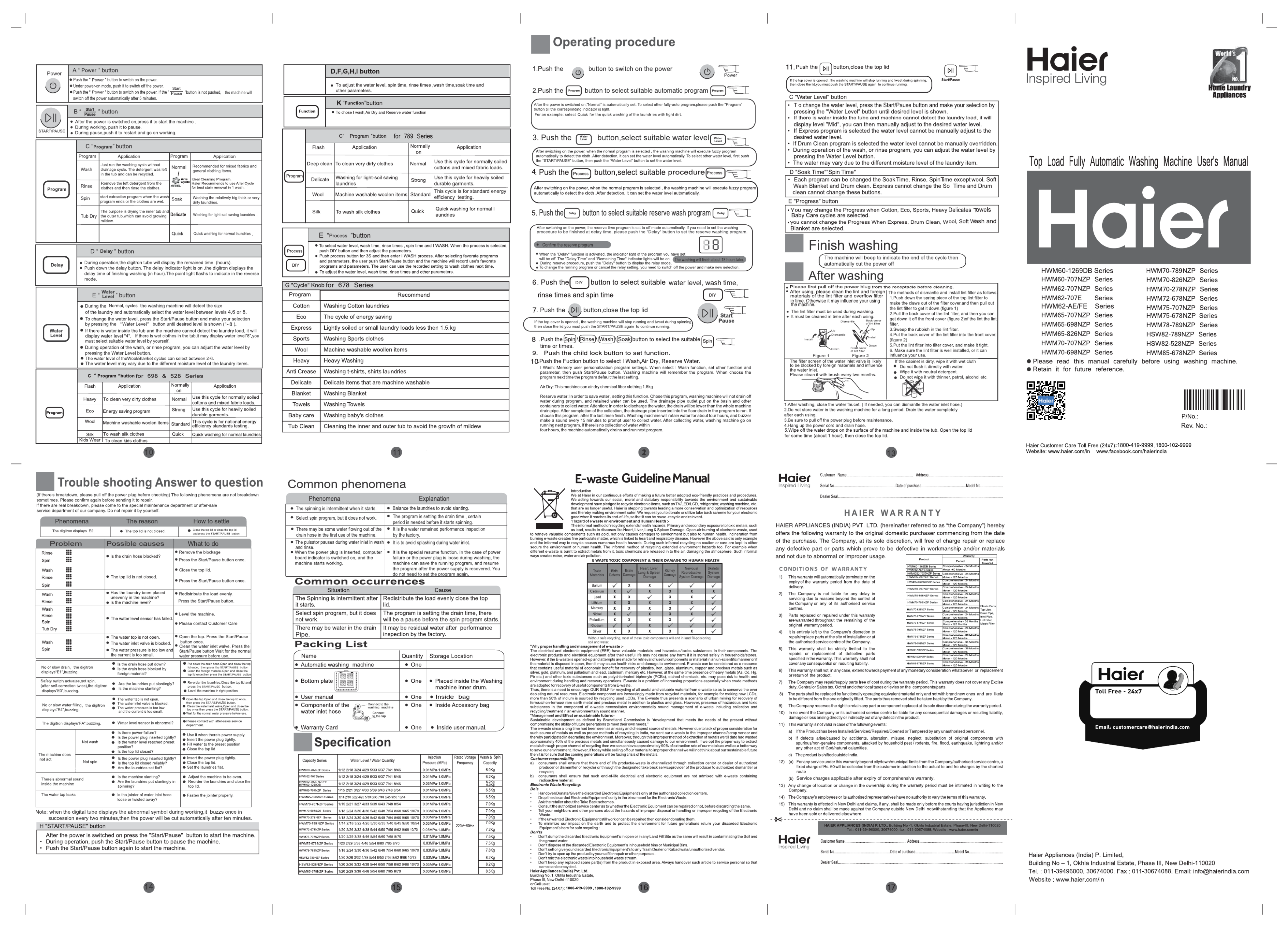 Hier is de Haier HWM78-789NZP (Wasmachine) gebruikershandleiding. 2 pagina's in taal Engels met een gewicht van 2.6 Mb. Als u geen antwoorden op uw probleem kunt vinden Vraag het onze community.