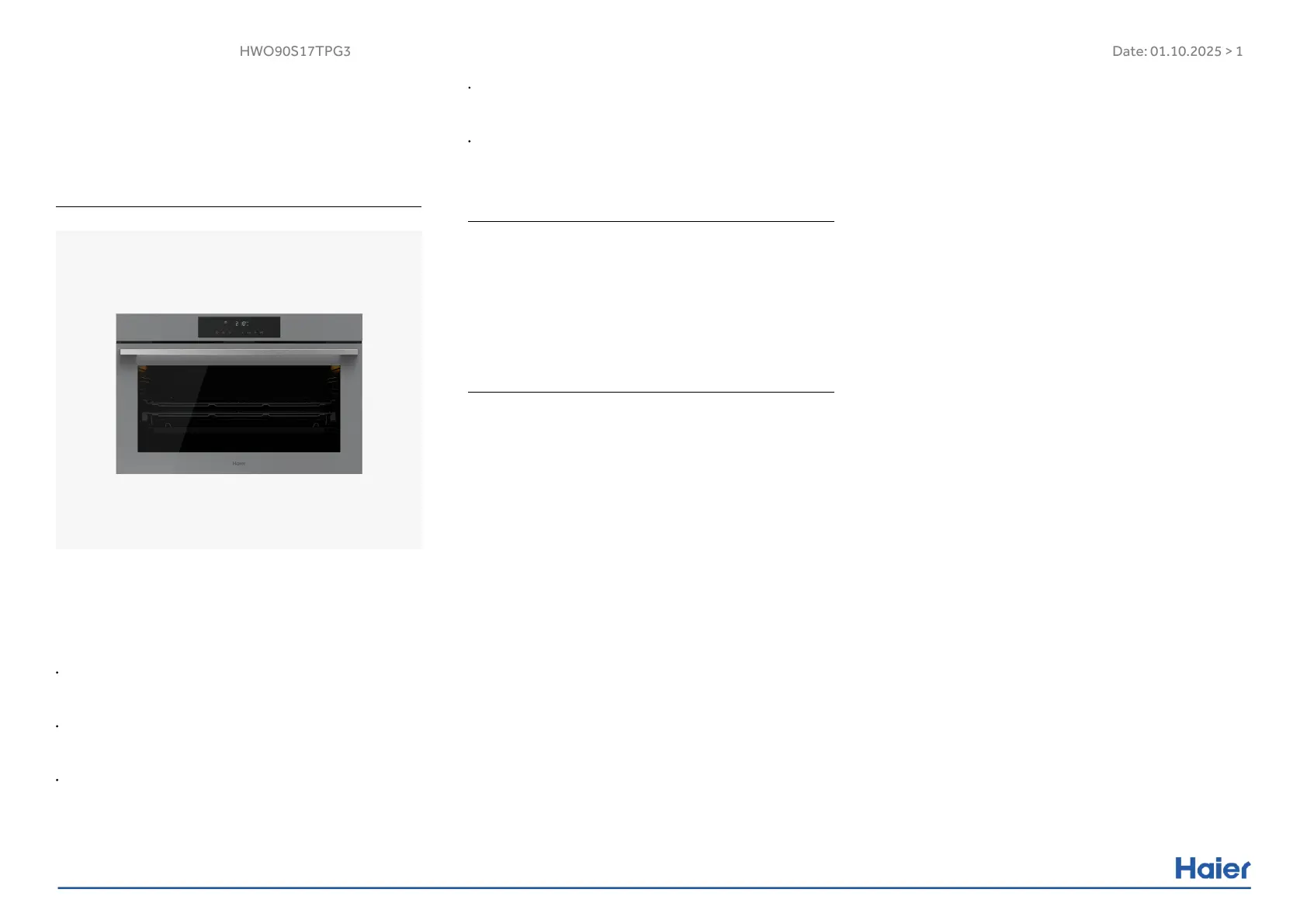 Hier is de Haier HWO90S17TPG3 (Oven) gebruikershandleiding. 3 pagina's in taal met een gewicht van 362,518.0 Mb. Als u geen antwoorden op uw probleem kunt vinden Vraag het onze community.