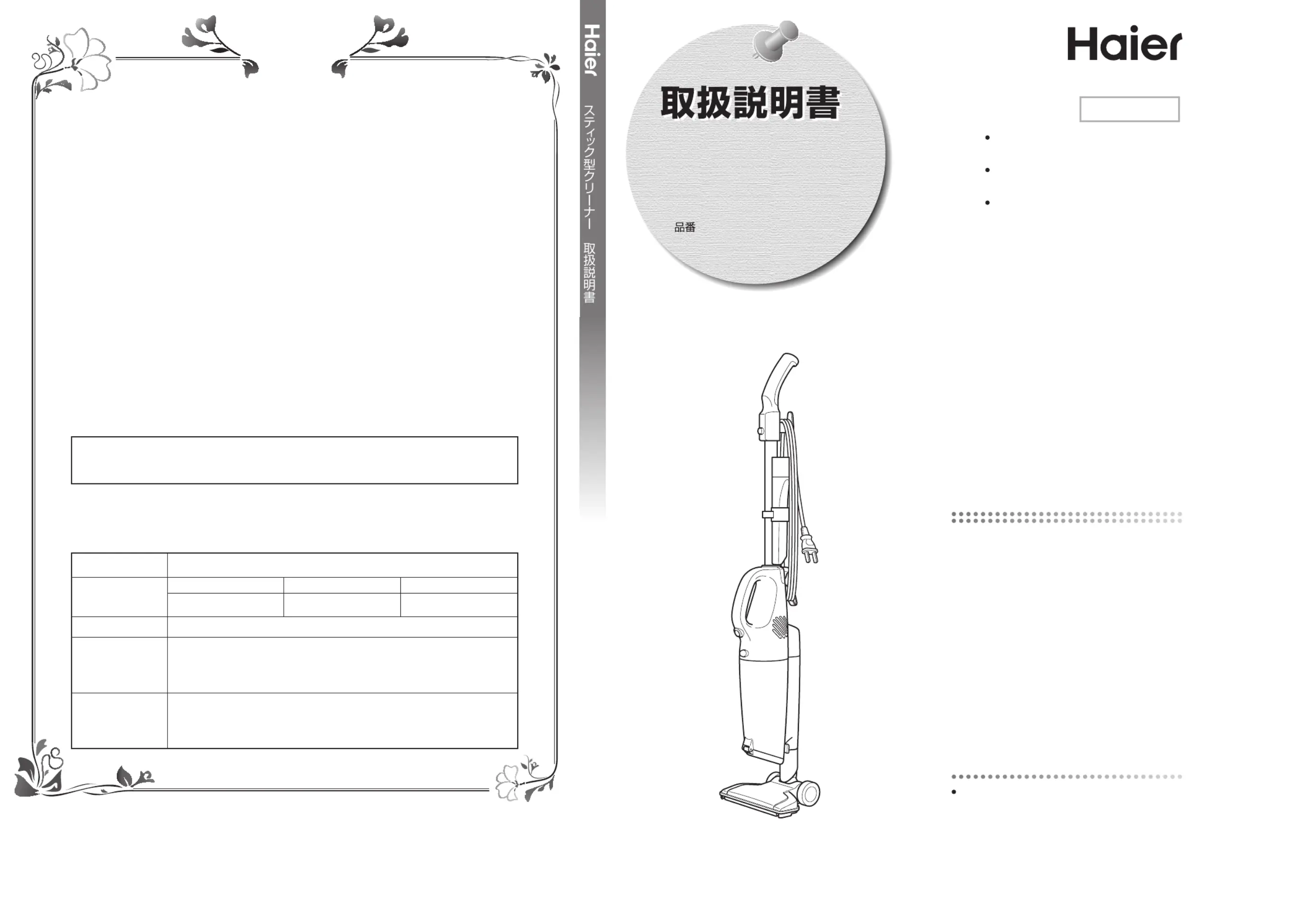 3.ご贈答等で本書に記入の販売店で無料修理をお受けになれない場合には、ハイアールジャパンセールス株式会社