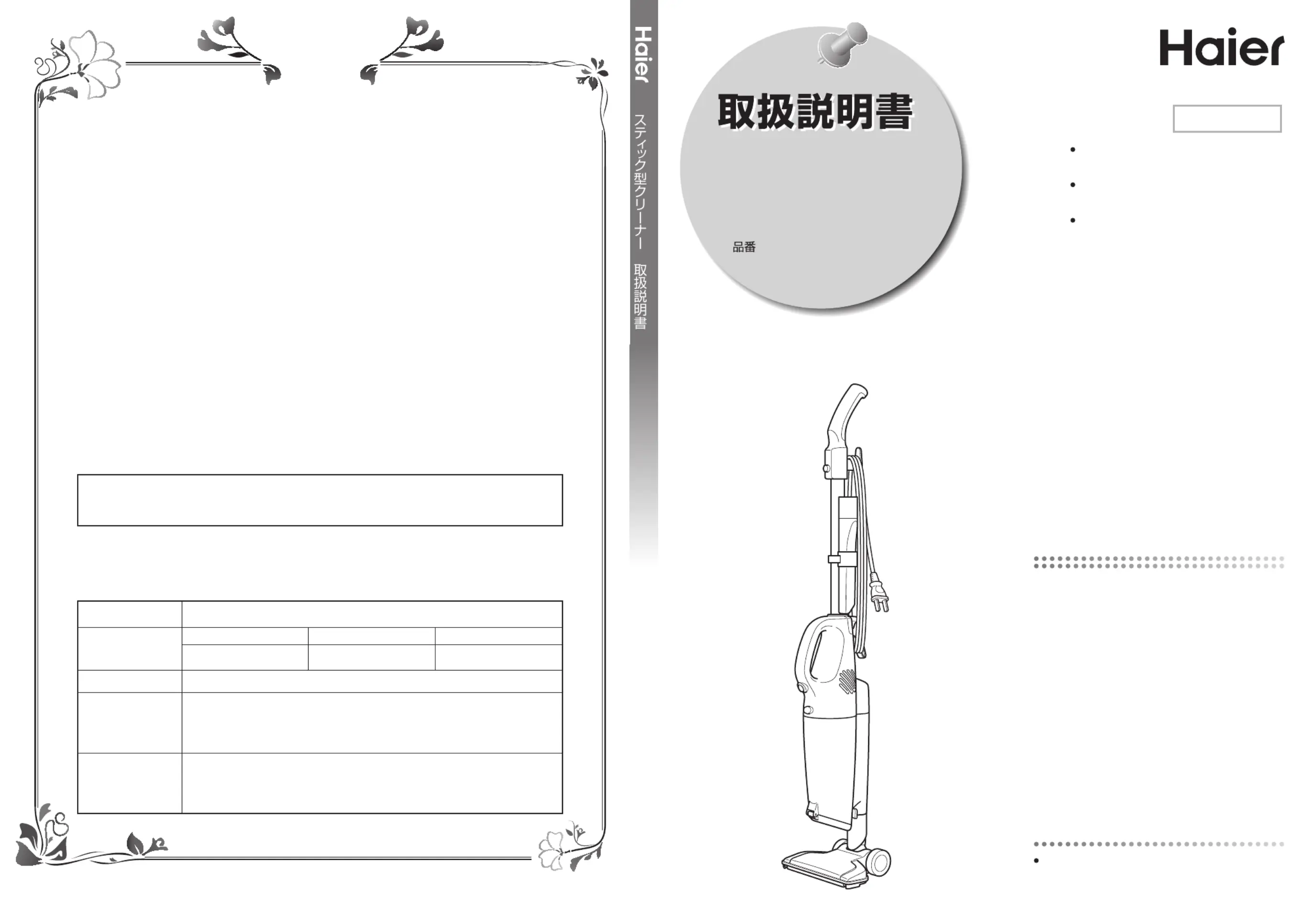 3.ご贈答等で本書に記入の販売店で無料修理をお受けになれない場合には、ハイアールジャパンセールス株式会社