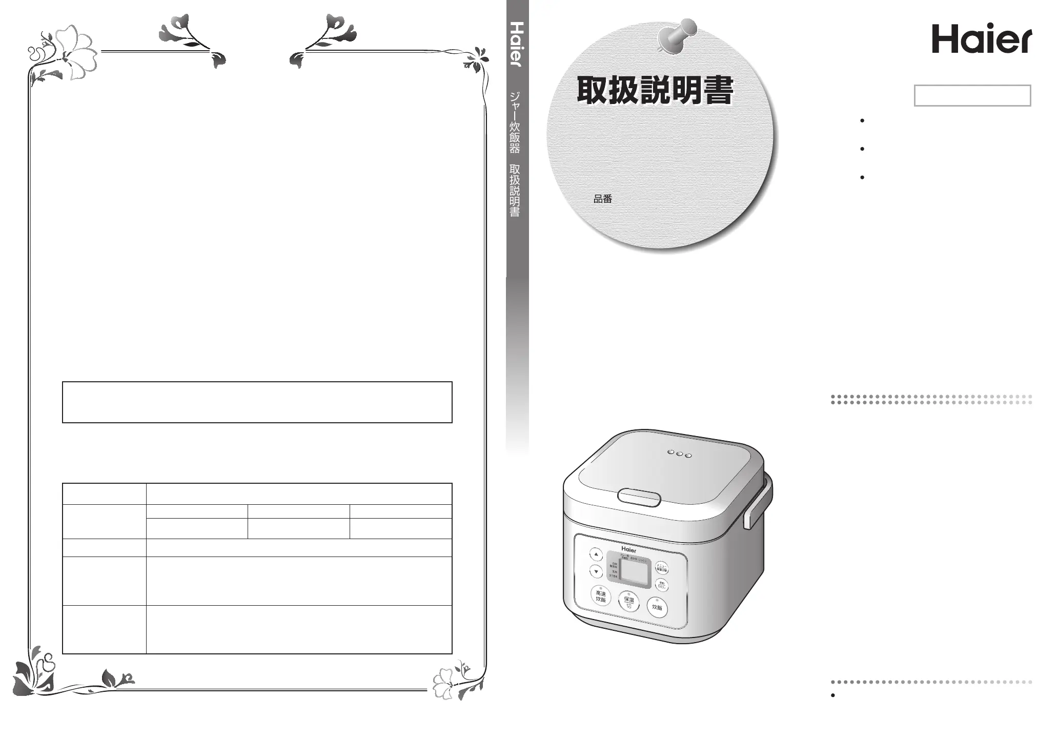 3.ご贈答等で本書に記入の販売店で無料修理をお受けになれない場合には、ハイアールジャパンセールス株式会社