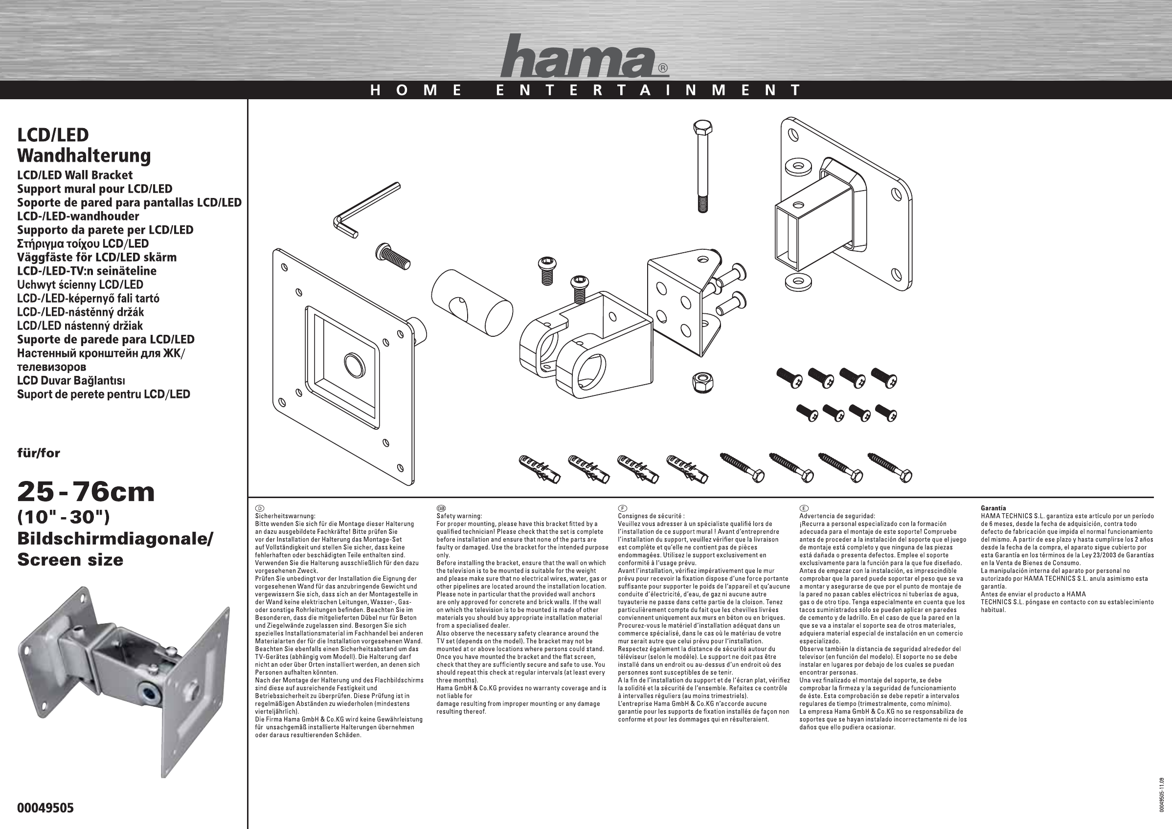 Hier is de Hama 00049505 (Wandbeugel) gebruikershandleiding. 2 pagina's in taal Alle talen met een gewicht van 2.8 Mb. Als u geen antwoorden op uw probleem kunt vinden Vraag het onze community.