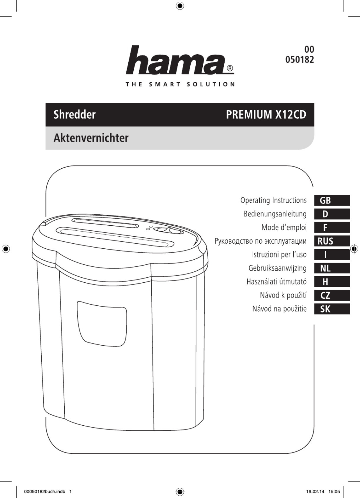 Hier is de Hama X12CD (Papiervernietiger) gebruikershandleiding. 114 pagina's in taal Engels met een gewicht van 5.1 Mb. Als u geen antwoorden op uw probleem kunt vinden Vraag het onze community.