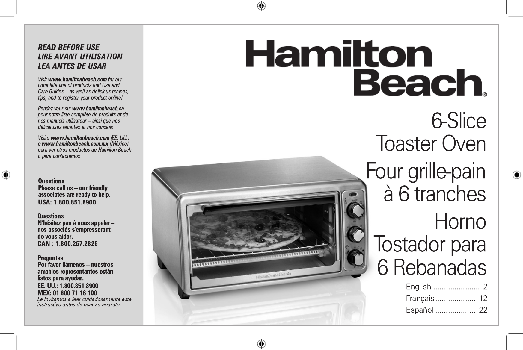 Hier is de Hamilton Beach 31411 (Oven) gebruikershandleiding. 32 pagina's in taal Engels met een gewicht van 4.0 Mb. Als u geen antwoorden op uw probleem kunt vinden Vraag het onze community.