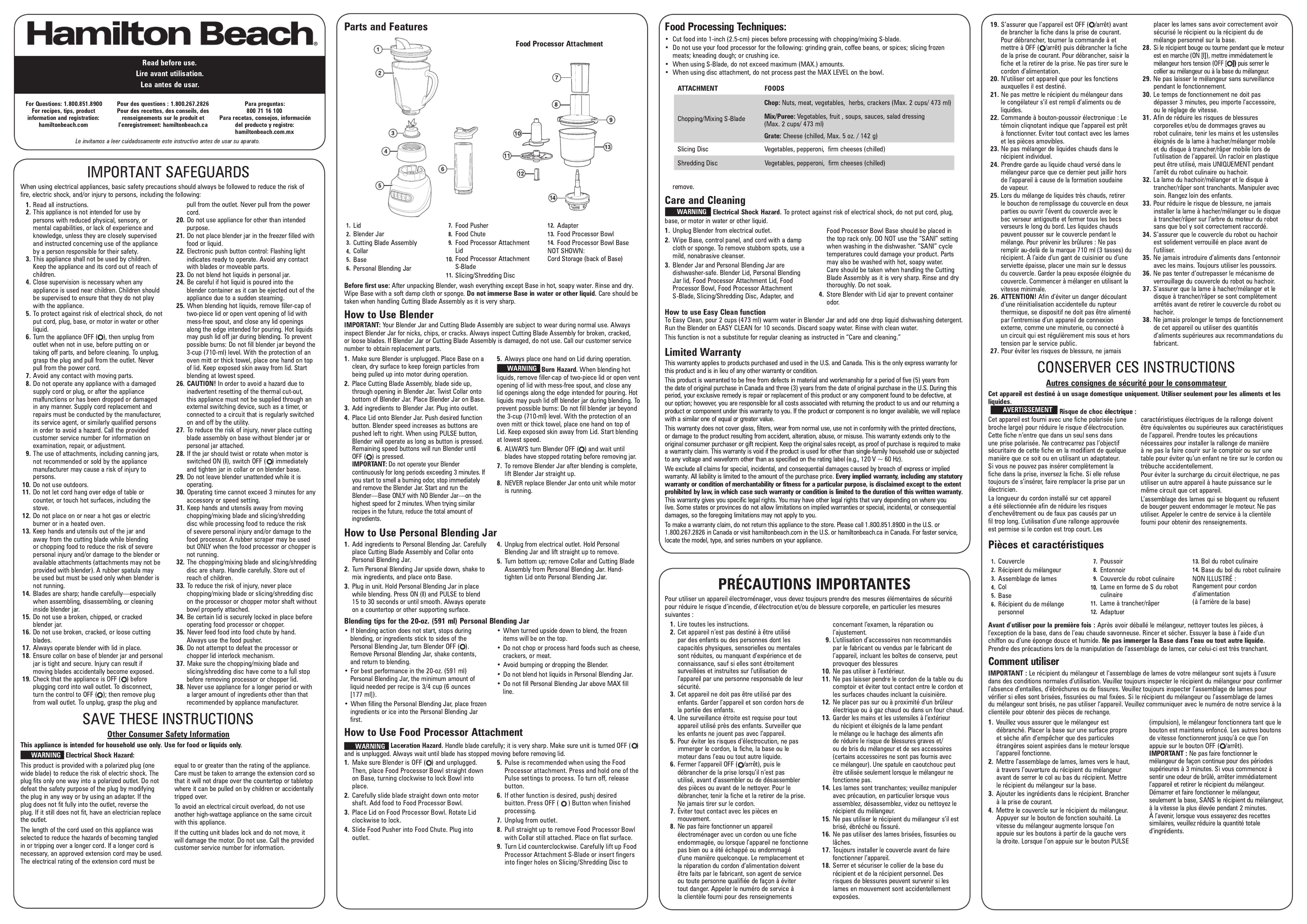 Hier is de Hamilton Beach 58176 (Blender) gebruikershandleiding. 2 pagina's in taal Engels met een gewicht van 1.1 Mb. Als u geen antwoorden op uw probleem kunt vinden Vraag het onze community.