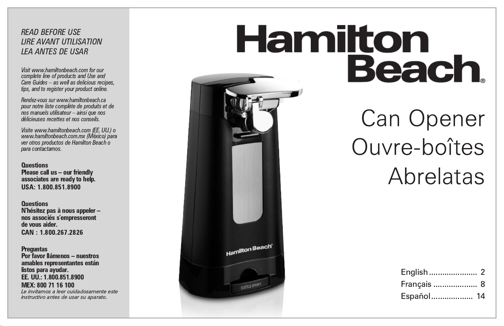 Hier is de Hamilton Beach 76510 (Blikopener) gebruikershandleiding. 20 pagina's in taal Engels met een gewicht van 2.2 Mb. Als u geen antwoorden op uw probleem kunt vinden Vraag het onze community.