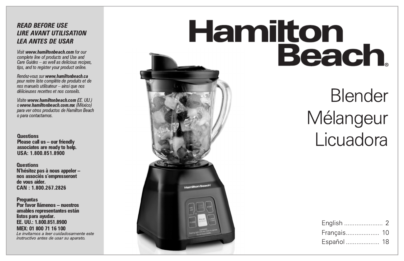 Hier is de Hamilton Beach Digital Smoothie 56207 (Blender) gebruikershandleiding. 28 pagina's in taal Engels met een gewicht van 2.6 Mb. Als u geen antwoorden op uw probleem kunt vinden Vraag het onze community.