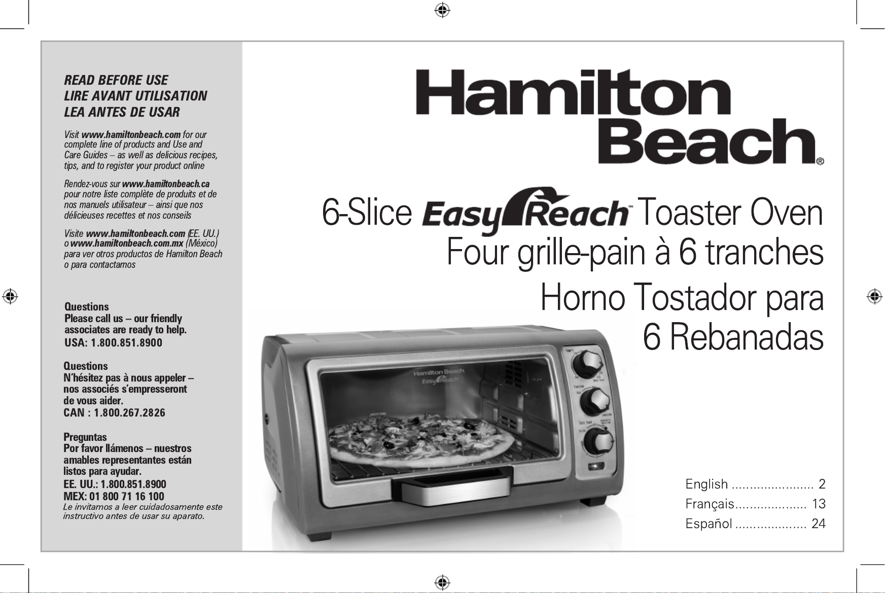 Hier is de Hamilton Beach Easy Reach 31127D (Oven) gebruikershandleiding. 36 pagina's in taal Engels met een gewicht van 4.7 Mb. Als u geen antwoorden op uw probleem kunt vinden Vraag het onze community.