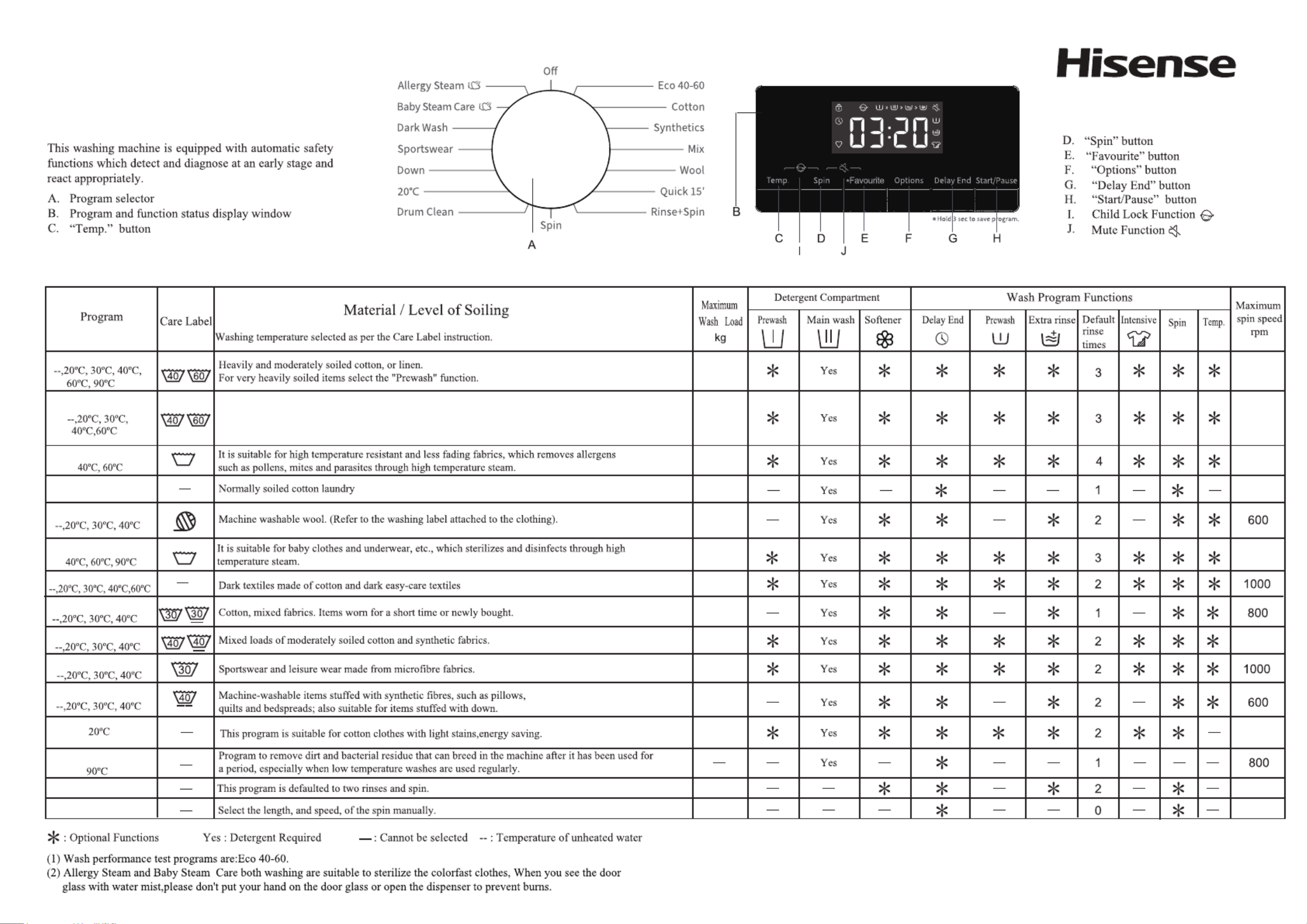 | Wasprogramma's: | Blouse/shirt, Quick, Sport, Steam |