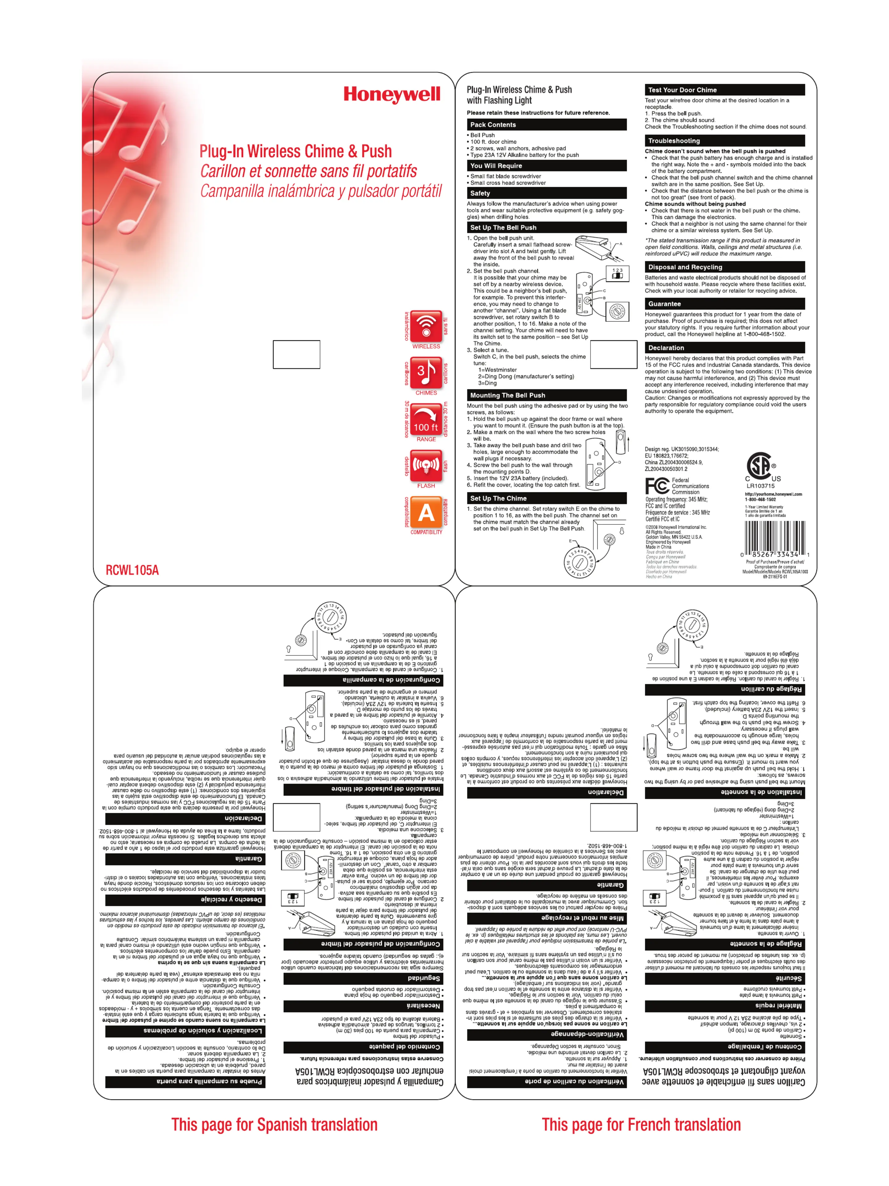 Hier is de Honeywell RCWL105A (Deurbel) gebruikershandleiding. 1 pagina's in taal met een gewicht van 948,261.0 Mb. Als u geen antwoorden op uw probleem kunt vinden Vraag het onze community.