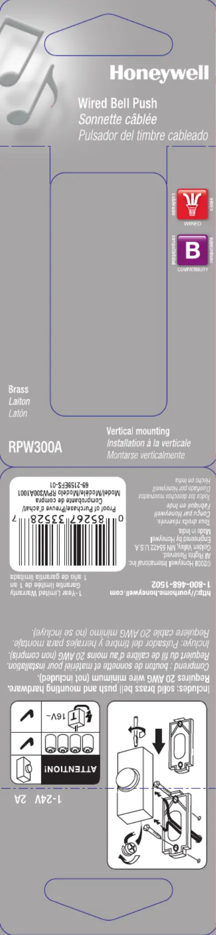 Hier is de Honeywell RPW300A (Deurbel) gebruikershandleiding. 1 pagina's in taal met een gewicht van 112,494.0 Mb. Als u geen antwoorden op uw probleem kunt vinden Vraag het onze community.