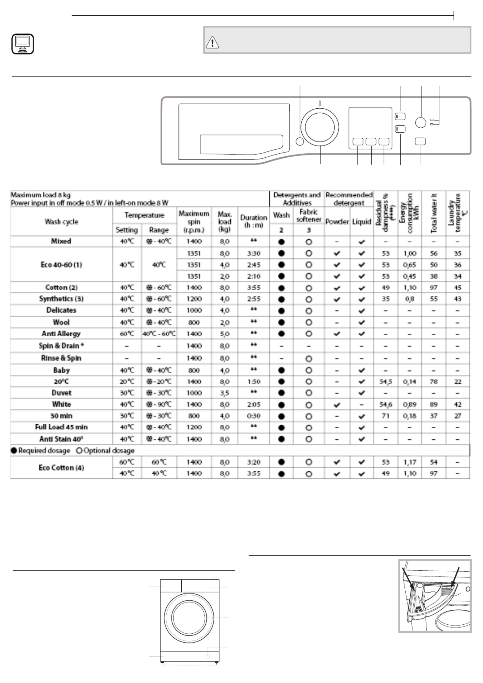 1) Eco 40-60 - Test wash cycle in compliance with EU Ecodesign regulation 2019/2014. The most efficient