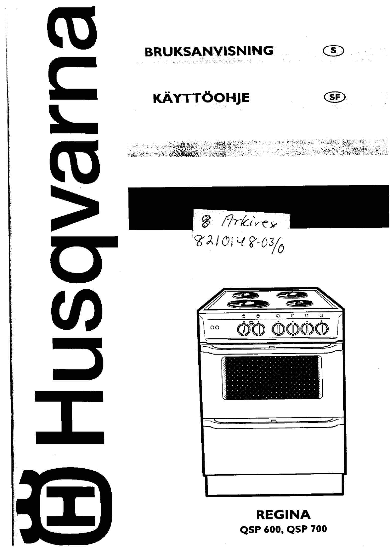Hier is de Husqvarna Regina QSP700 (Fornuis) gebruikershandleiding. 23 pagina's in taal - met een gewicht van 1.9 Mb. Als u geen antwoorden op uw probleem kunt vinden Vraag het onze community.