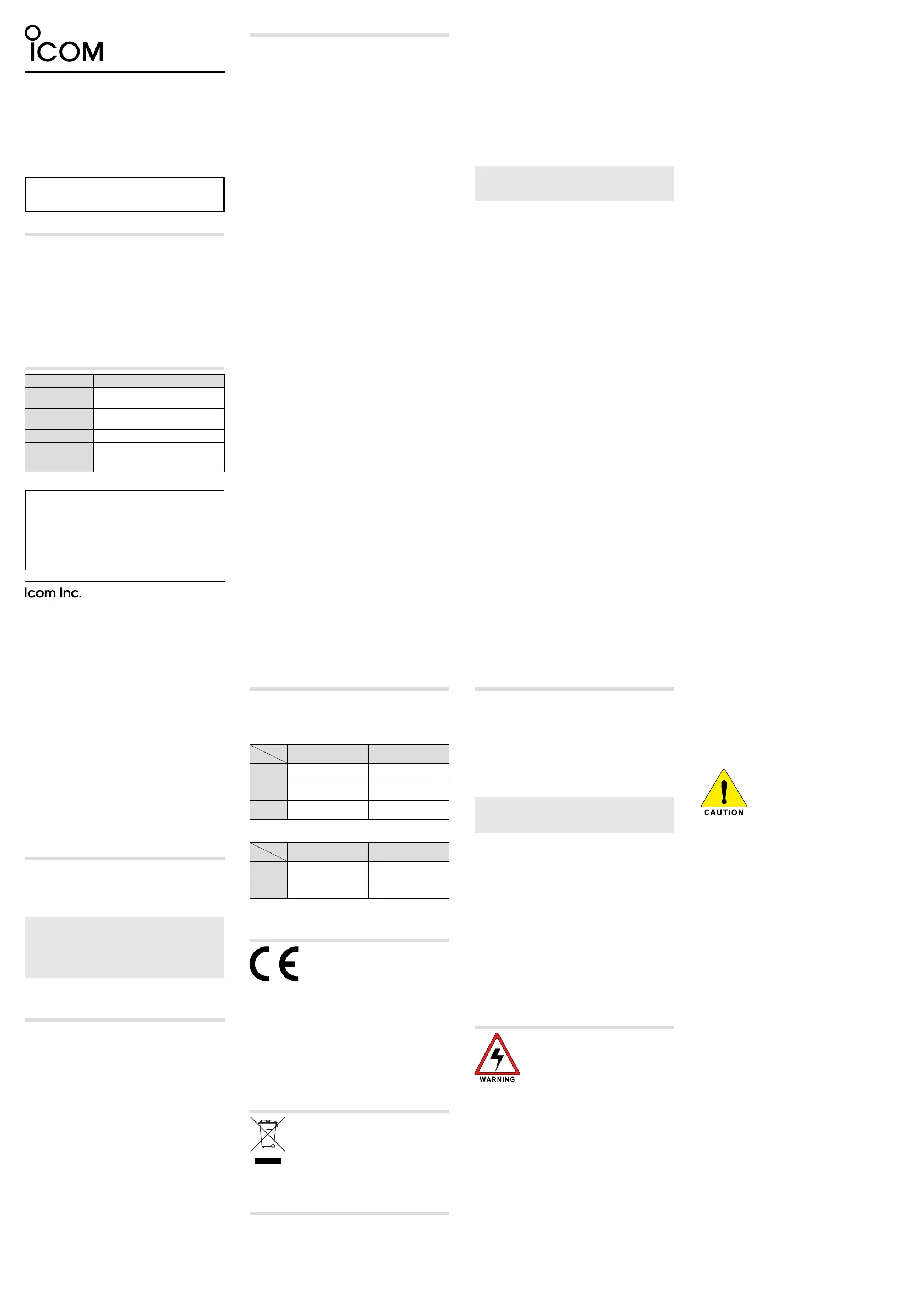 Thank you for choosing this Icom product.