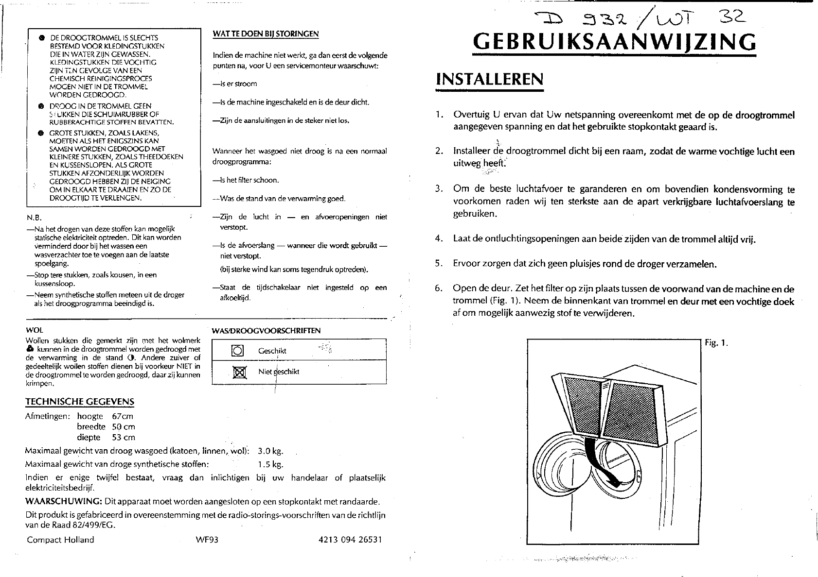 Hier is de Indesit D 932 (Wasdroger) gebruikershandleiding. 2 pagina's in taal Nederlands met een gewicht van 0.2 Mb. Als u geen antwoorden op uw probleem kunt vinden Vraag het onze community.