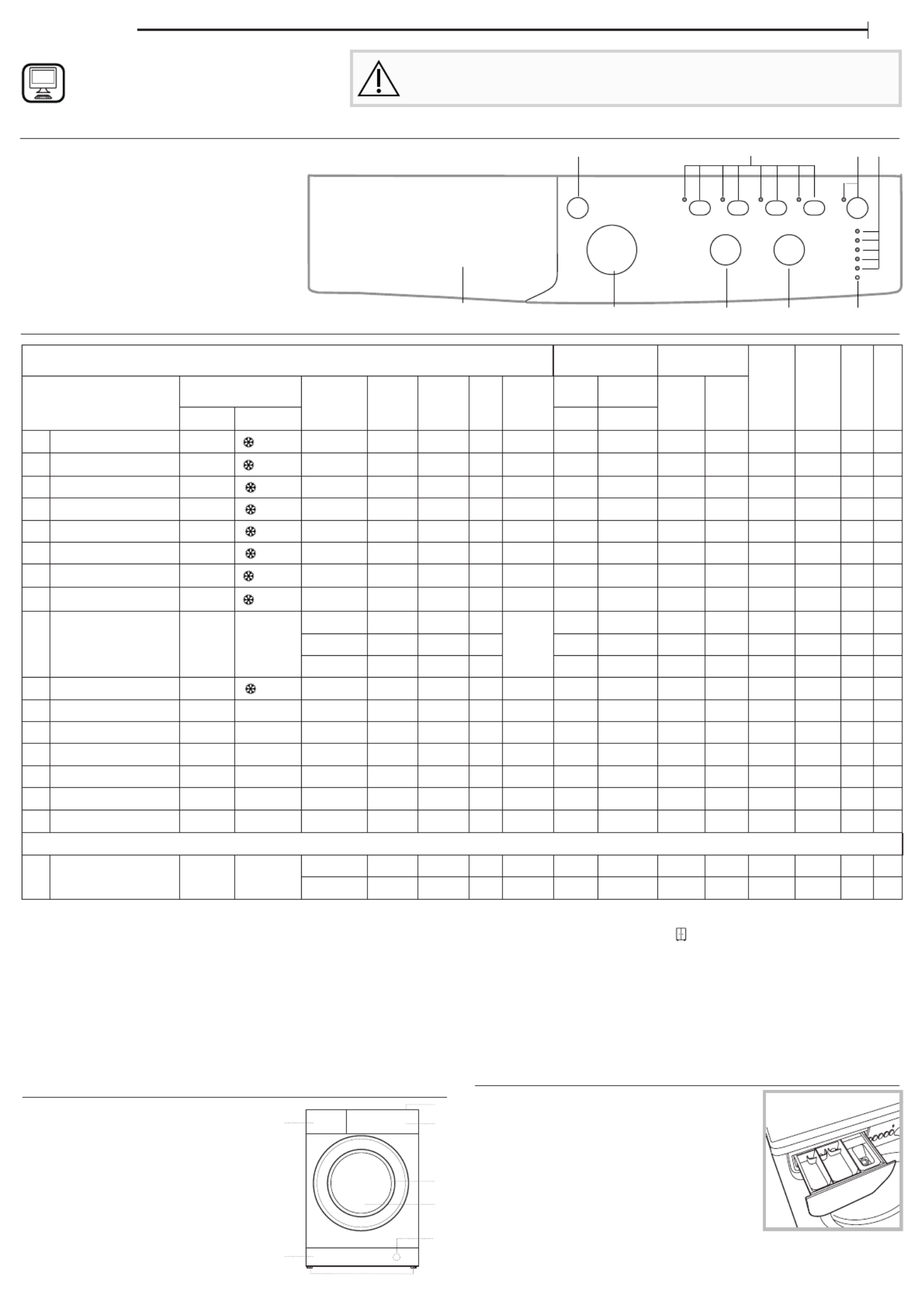Note: for the Eco 40-60 program in the WASH CYCLE TABLE the value of the maximum
