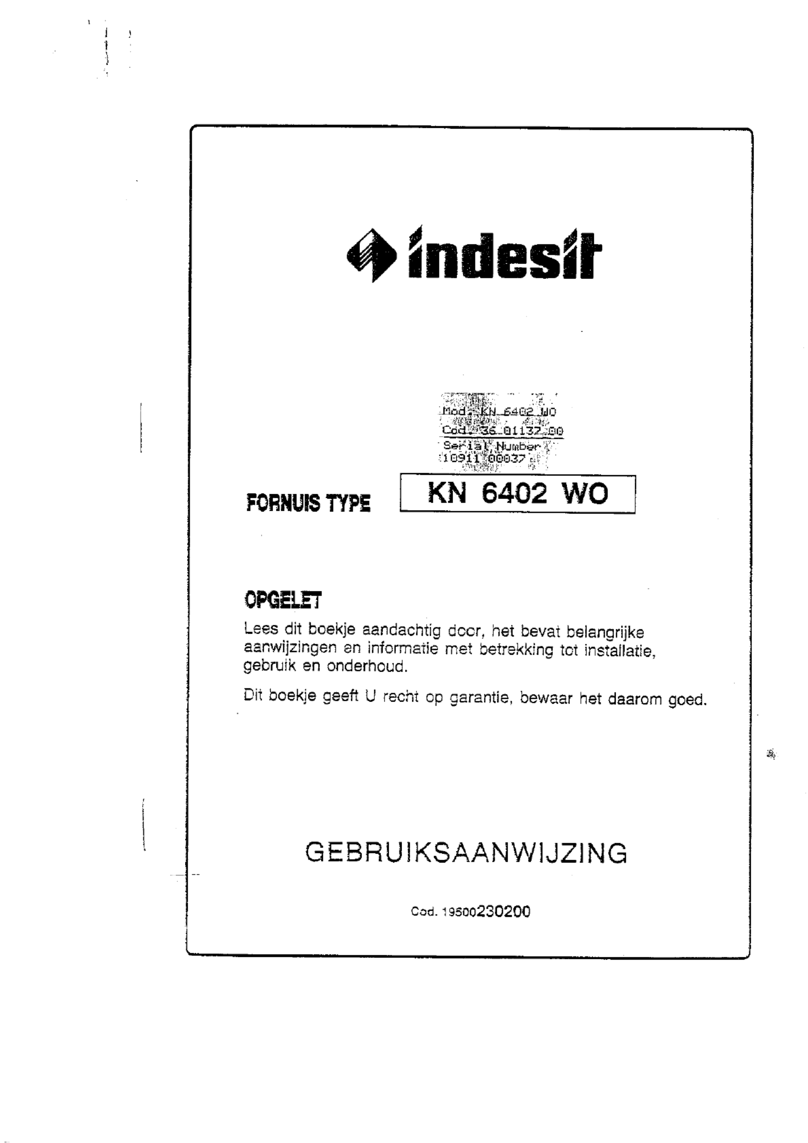 Hier is de Indesit KN6402WO (Fornuis) gebruikershandleiding. 7 pagina's in taal Nederlands met een gewicht van 0.6 Mb. Als u geen antwoorden op uw probleem kunt vinden Vraag het onze community.