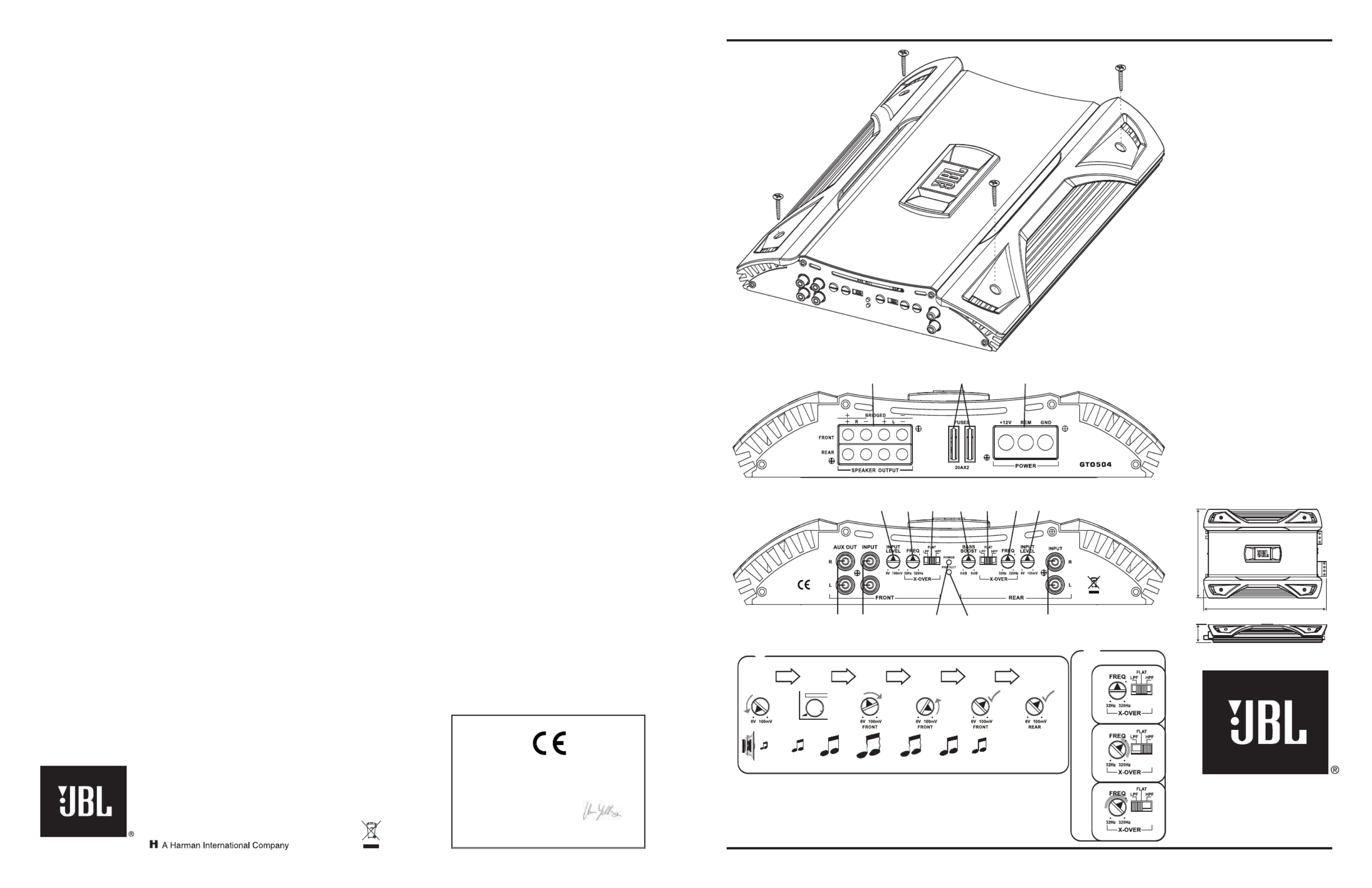 Hier is de JBL GTO504 (Receiver) gebruikershandleiding. 2 pagina's in taal Engels met een gewicht van 0.4 Mb. Als u geen antwoorden op uw probleem kunt vinden Vraag het onze community.
