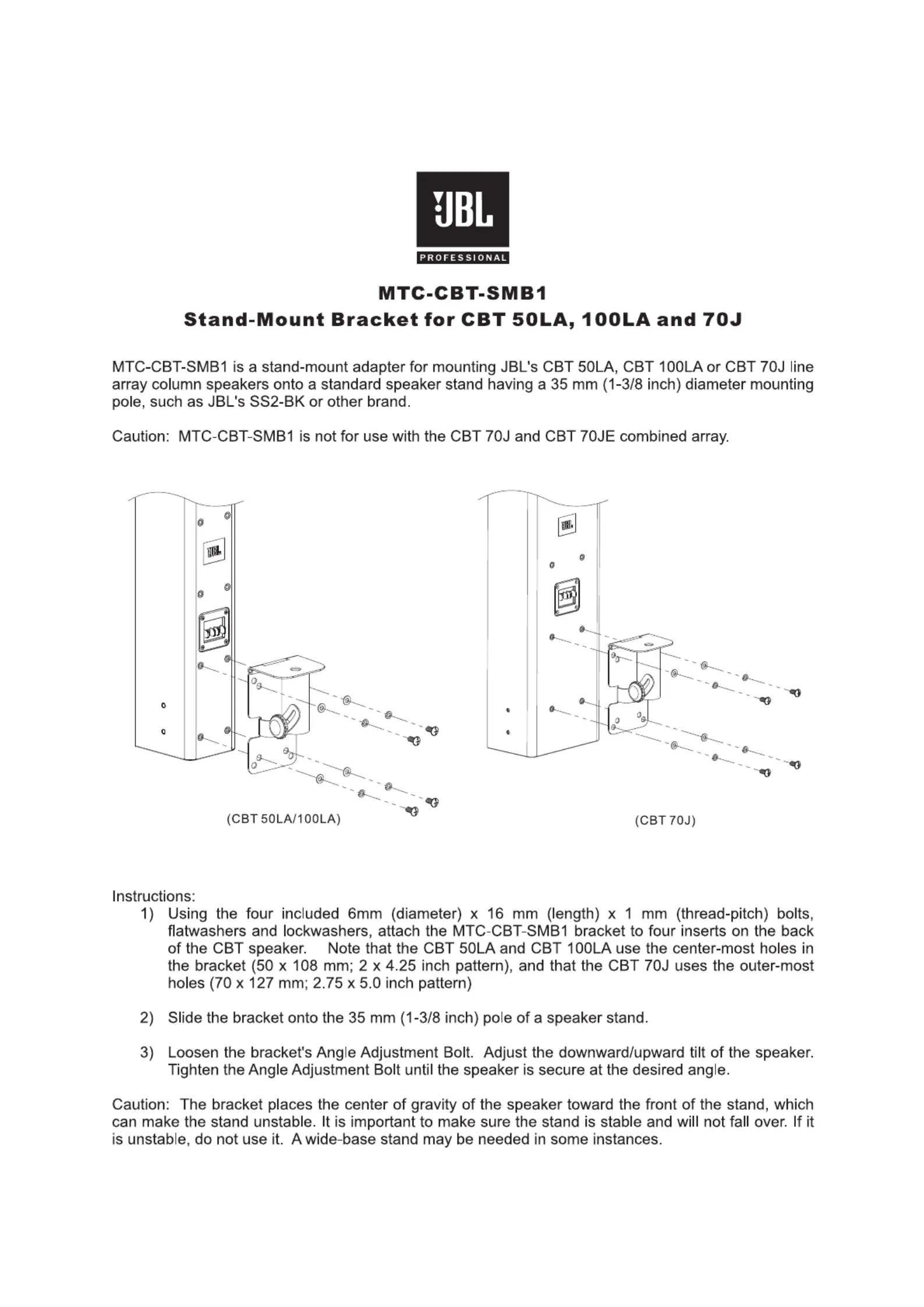 JBL MTC-CBT-SMB1 Handleiding