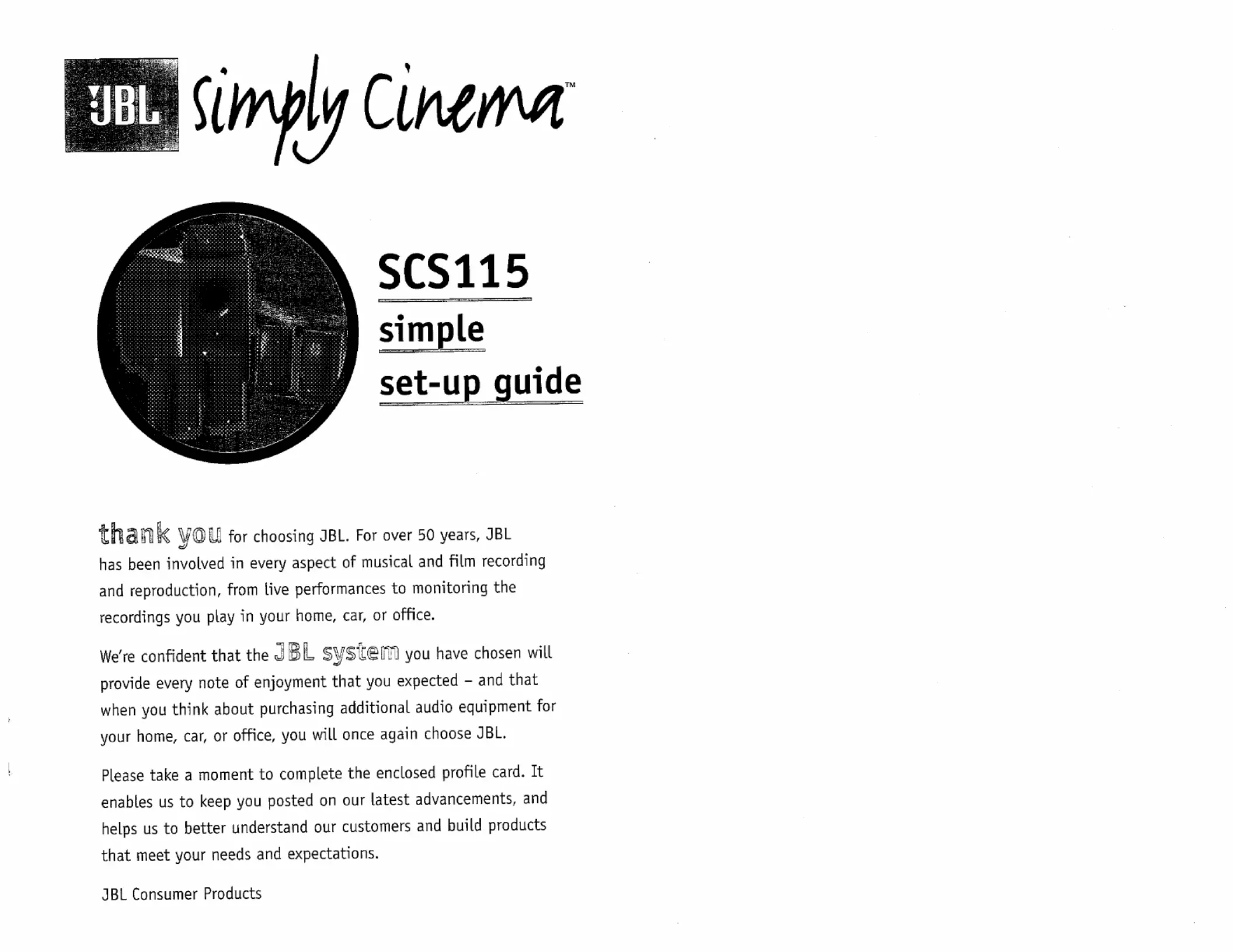Hier is de JBL SCS115 (Speaker) gebruikershandleiding. 4 pagina's in taal met een gewicht van 664,322.0 Mb. Als u geen antwoorden op uw probleem kunt vinden Vraag het onze community.