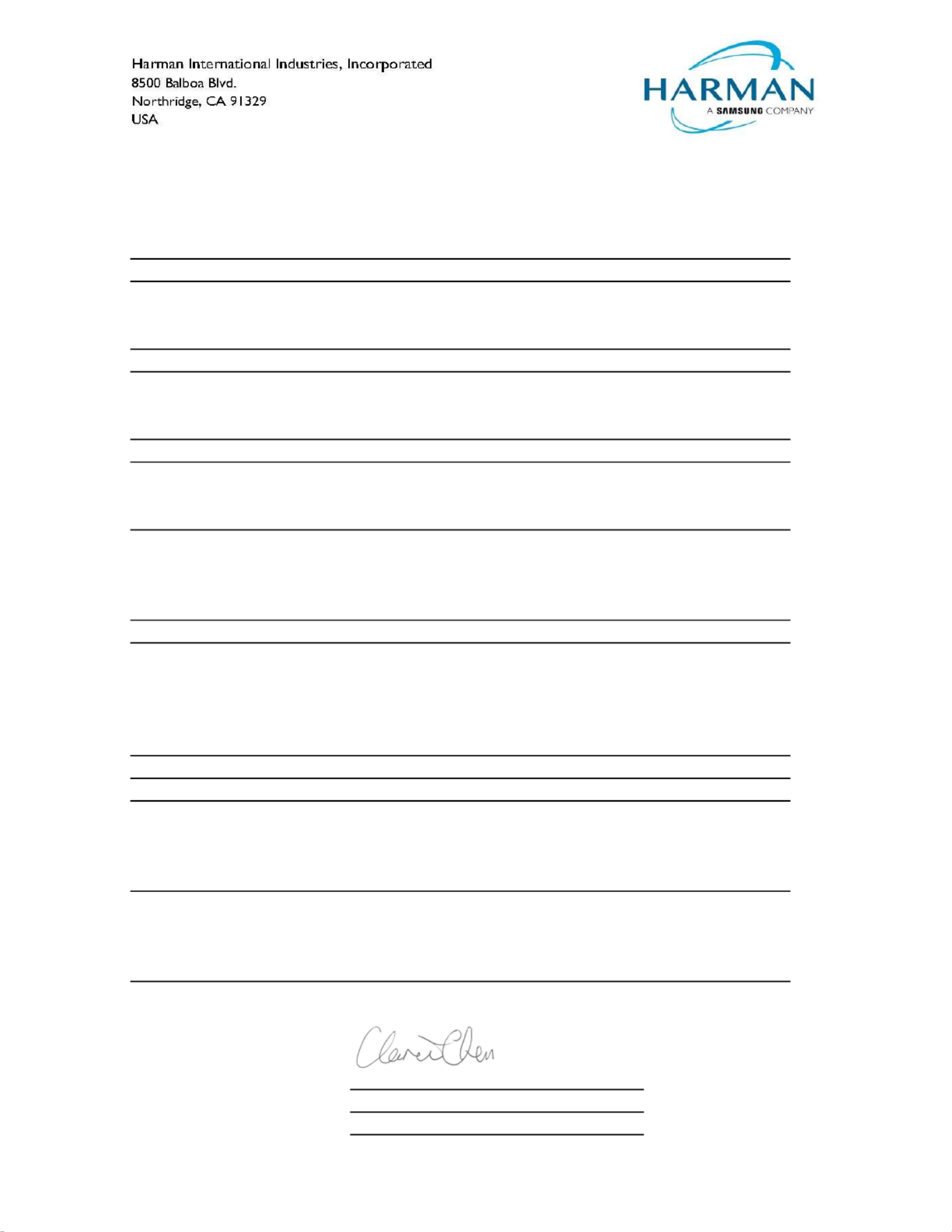 Signed for and on behalf of: Harman International Industries, Incorporated