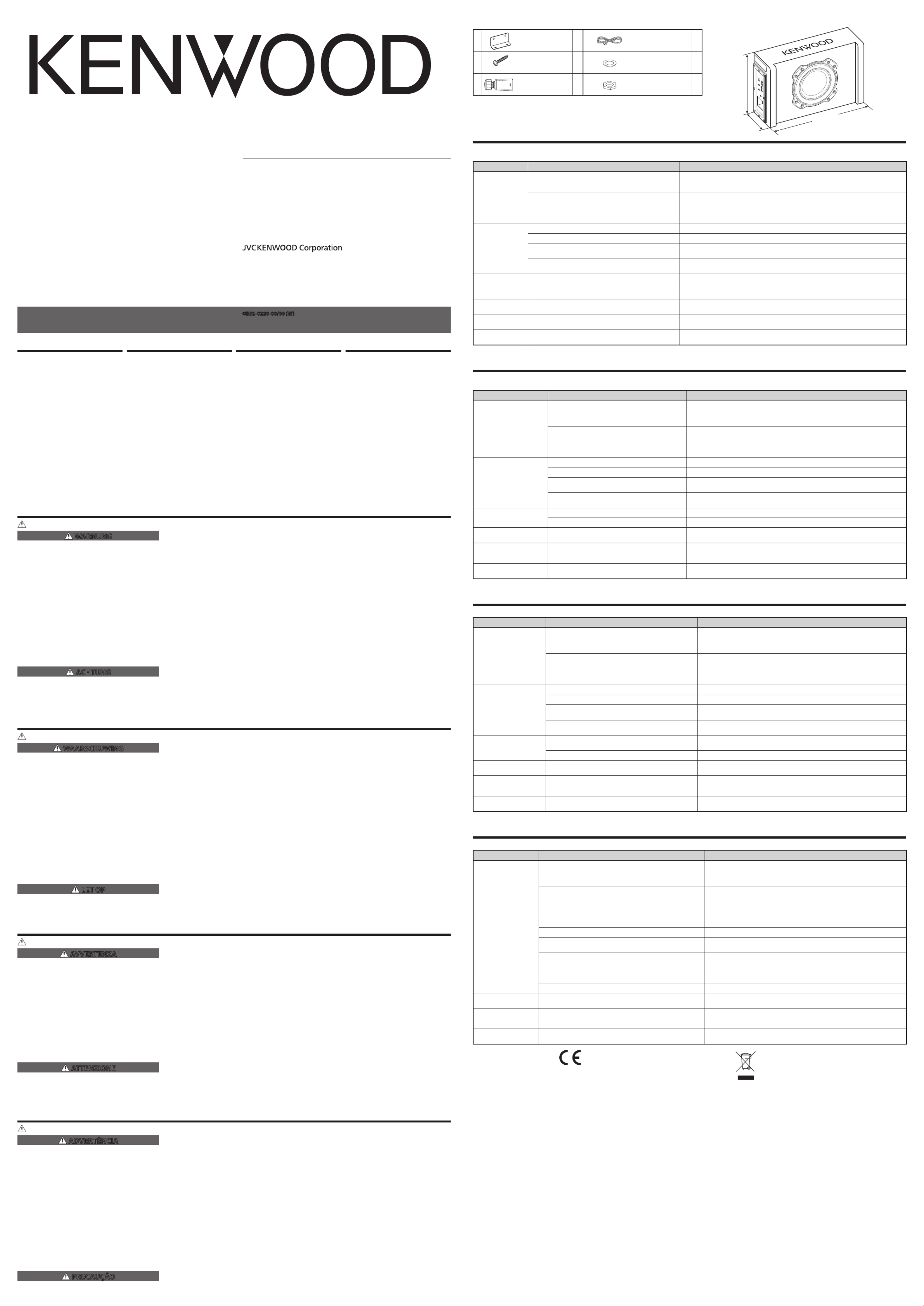 Hier is de Kenwood PA-W801B (Subwoofer) gebruikershandleiding. 3 pagina's in taal Nederlands met een gewicht van 1.5 Mb. Als u geen antwoorden op uw probleem kunt vinden Vraag het onze community.