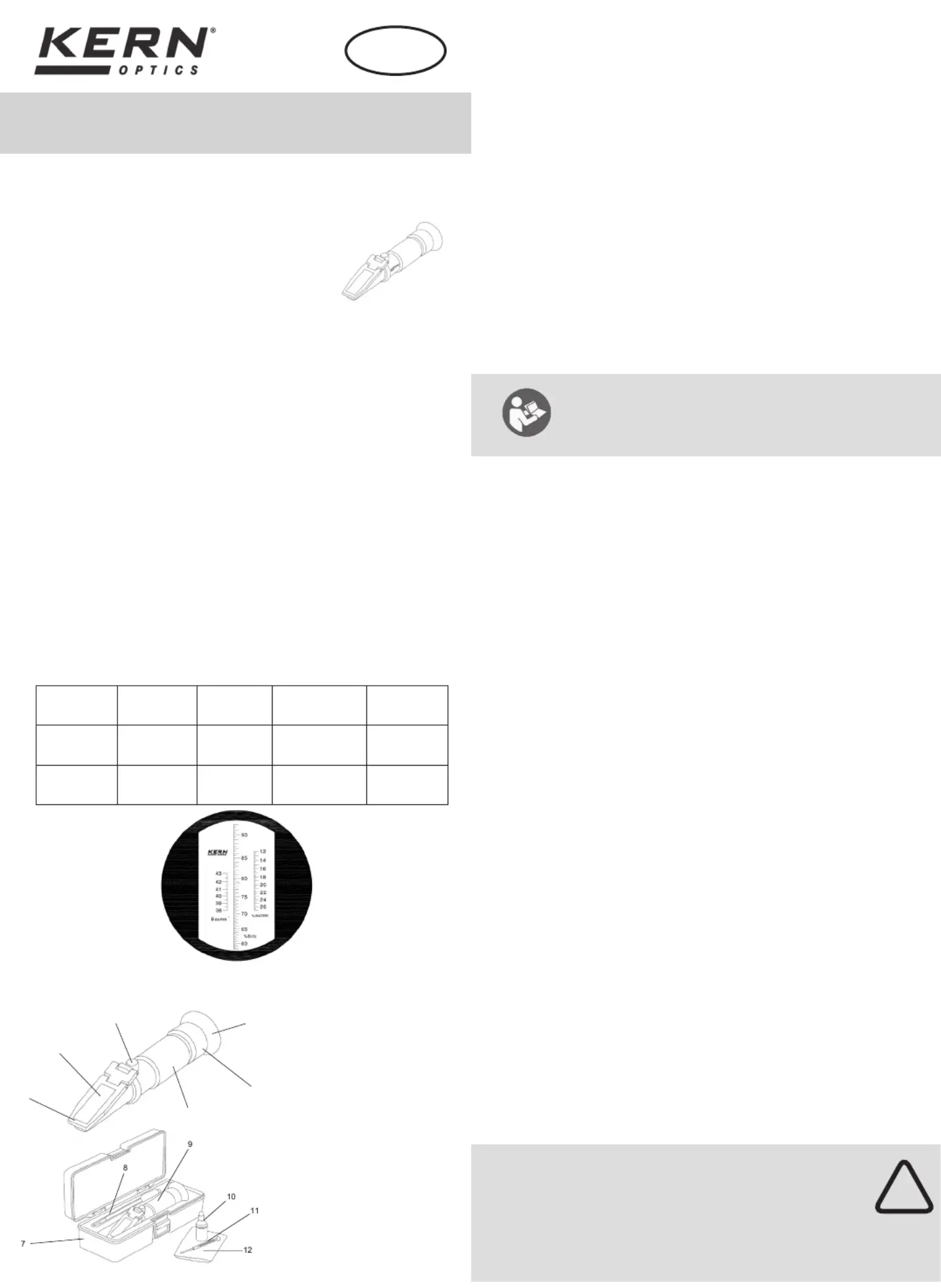 ▸ The refractometer must not be exposed to extreme temperatures, high