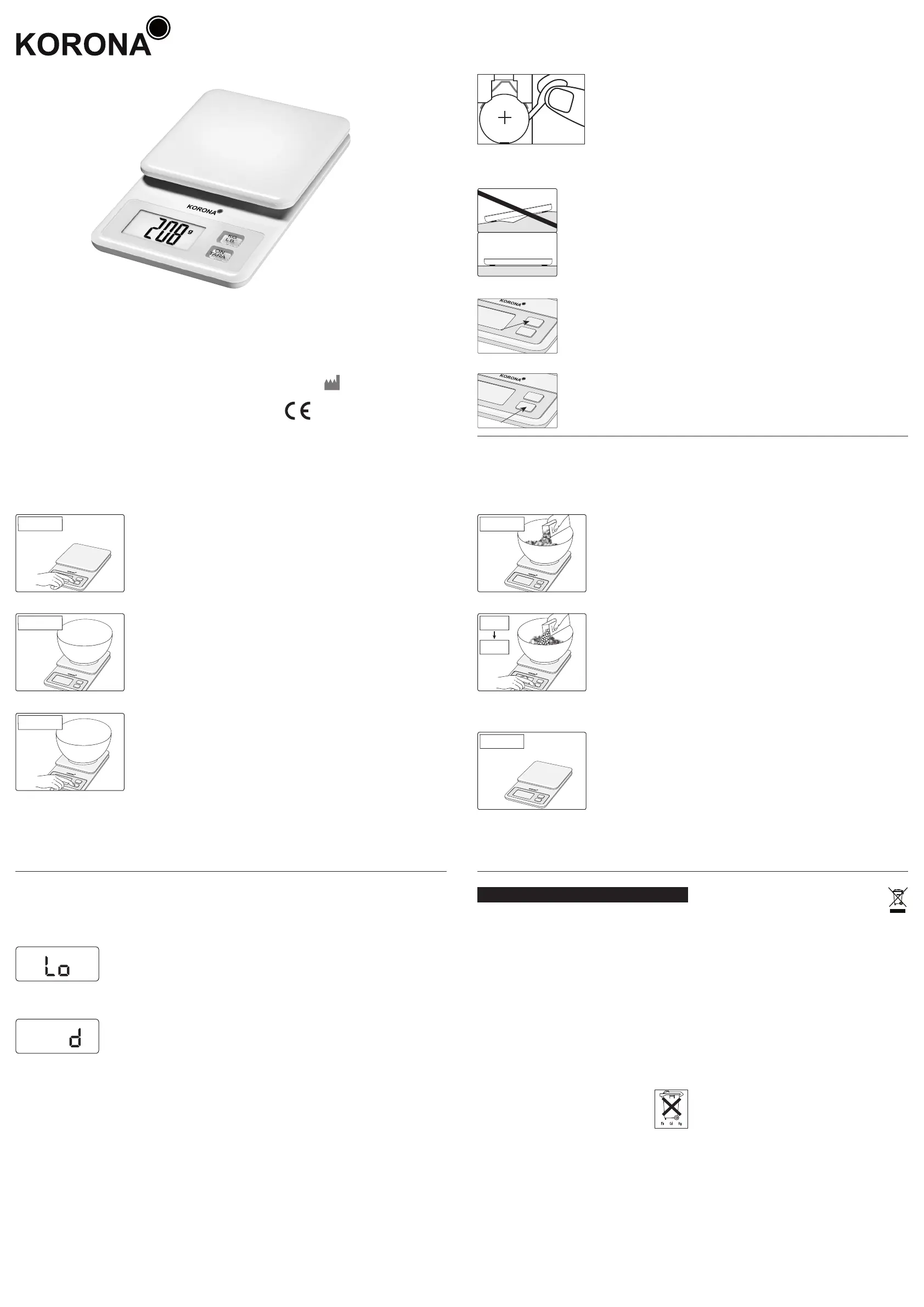 Hier is de Korona Karlotta (Keukenweegschaal) gebruikershandleiding. 4 pagina's in taal Nederlands met een gewicht van 1,812,270.0 Mb. Als u geen antwoorden op uw probleem kunt vinden Vraag het onze community.