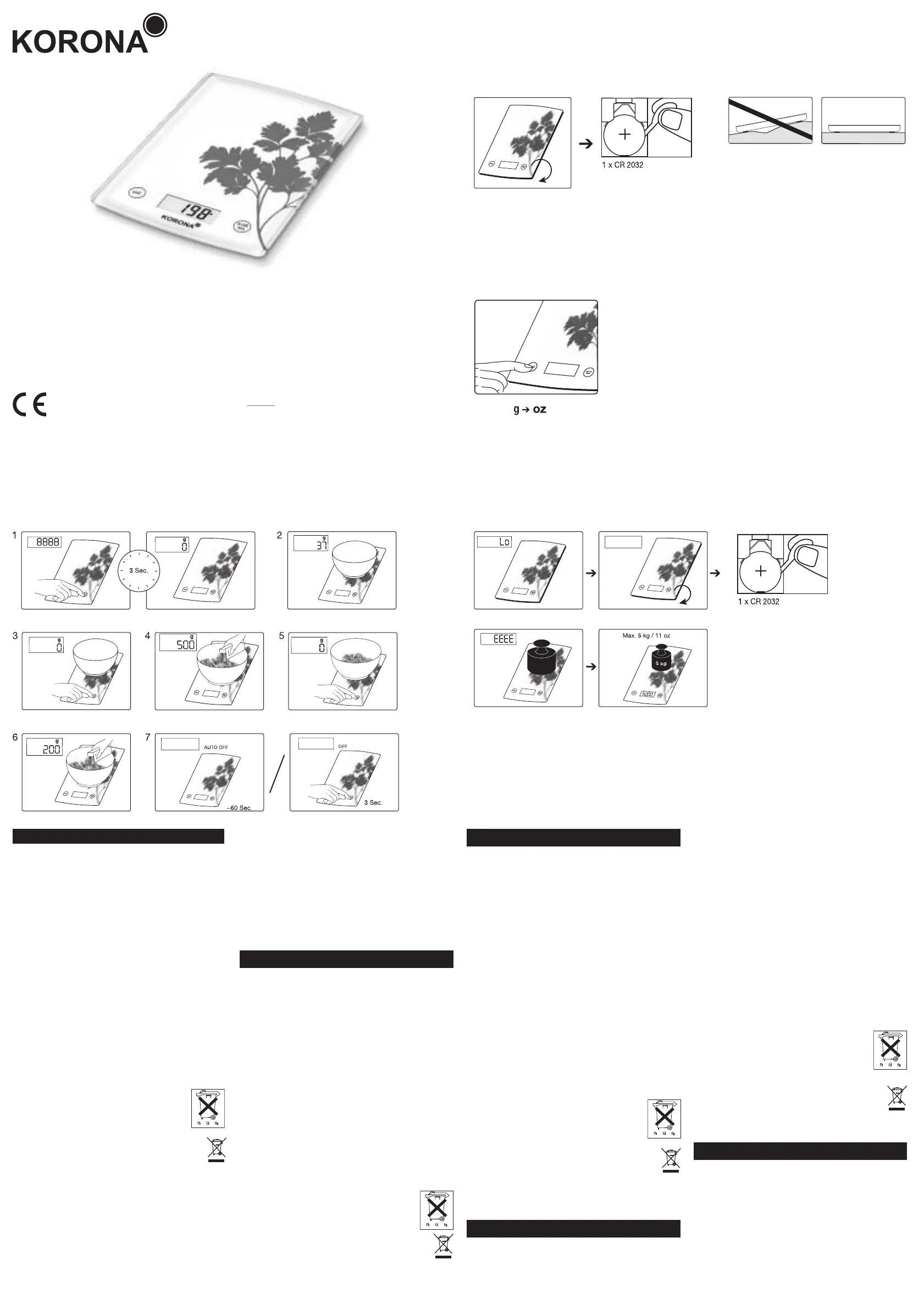 • Die Belastbarkeit der Waage beträgt max. 5 kg. Bei