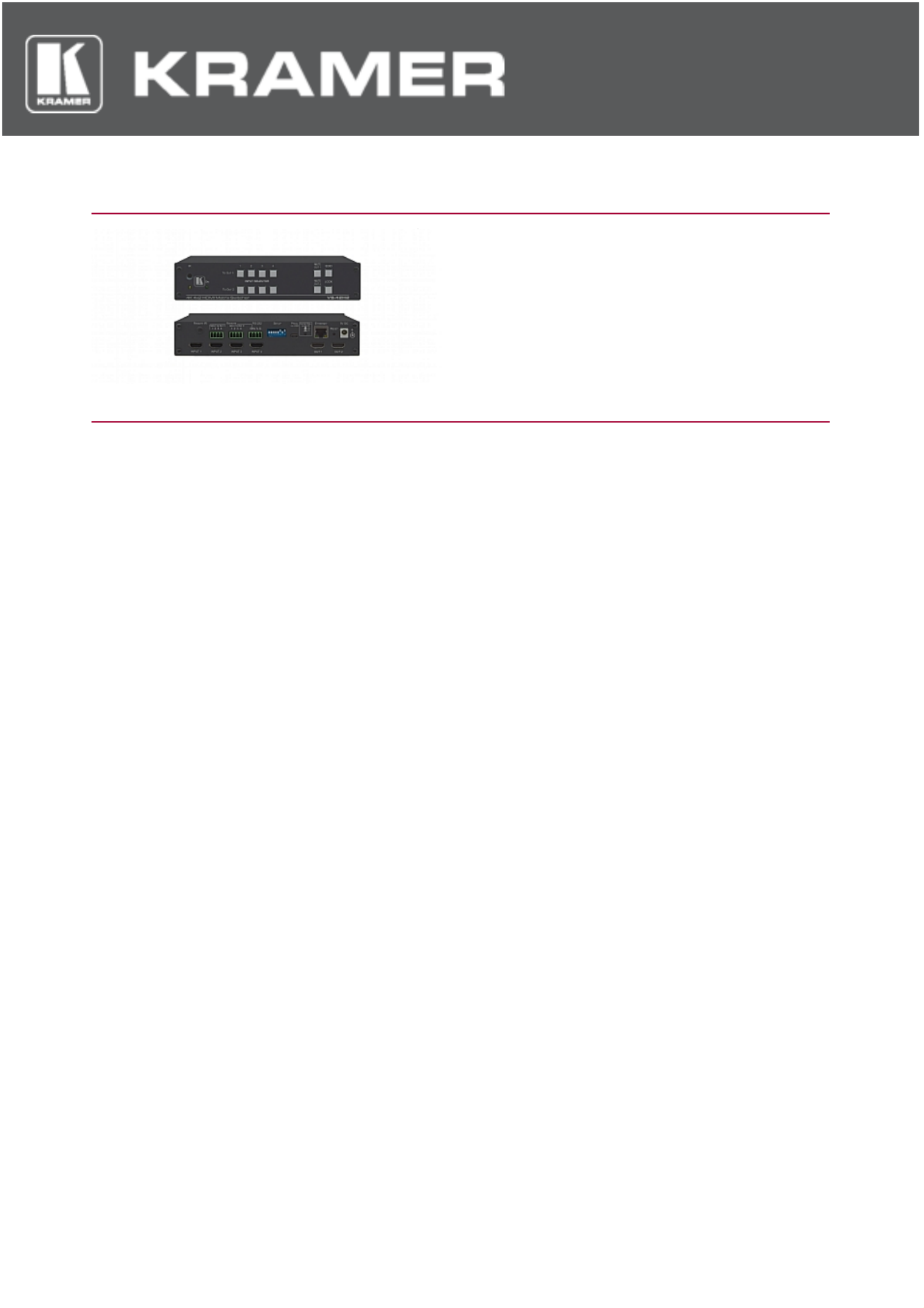 Hier is de Kramer VS-42H2 (Router) gebruikershandleiding. 3 pagina's in taal Engels met een gewicht van 0.3 Mb. Als u geen antwoorden op uw probleem kunt vinden Vraag het onze community.