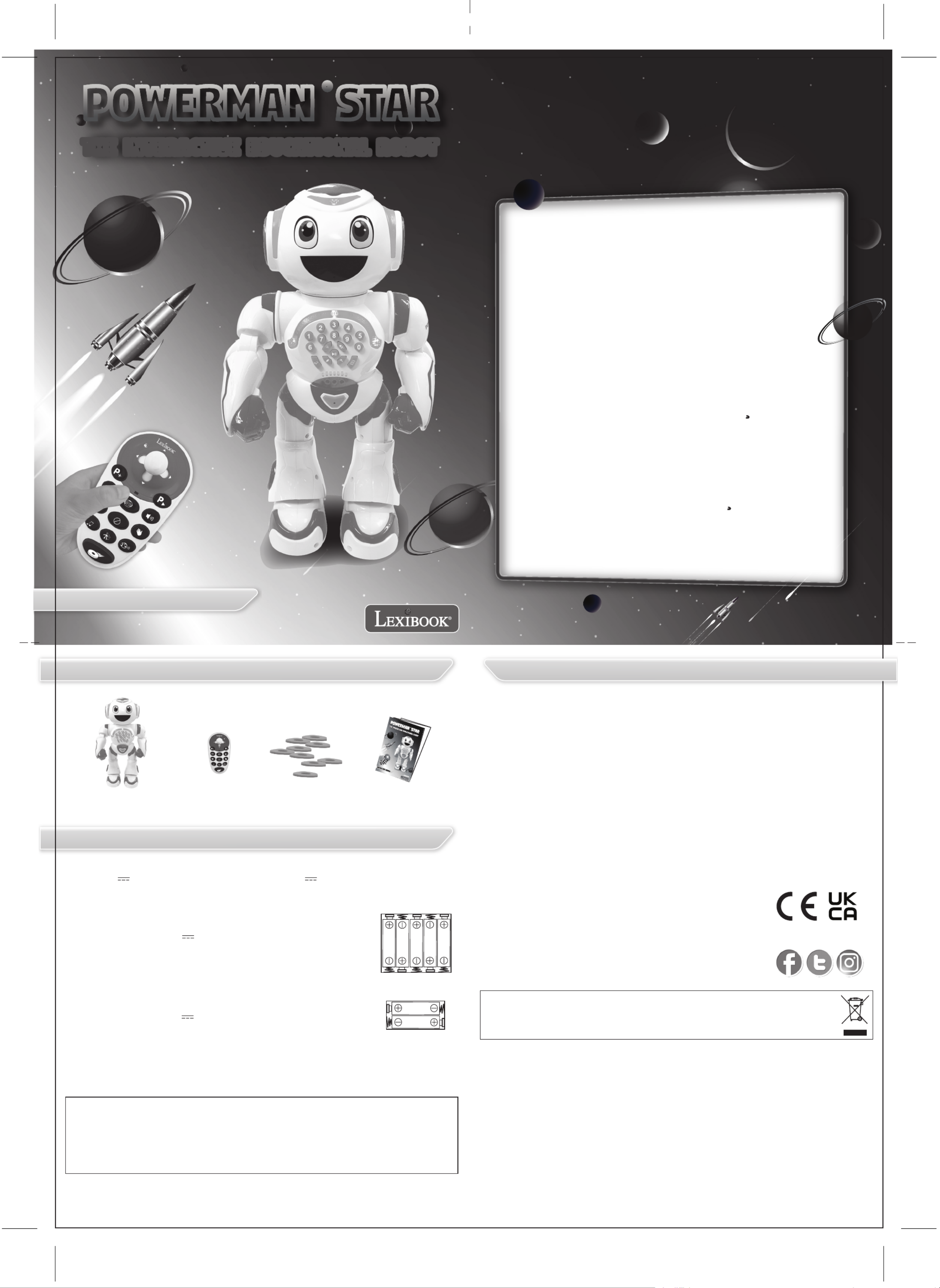 1 x remote control 9 x foam discs 1 x instruction manual1 x POWERMAN ® STAR robot