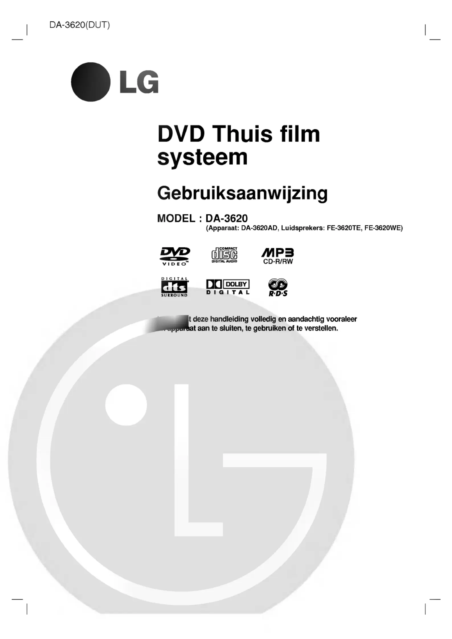 Hier is de LG DA-3620 (Home cinema set) gebruikershandleiding. 30 pagina's in taal Nederlands met een gewicht van 4,722,210.0 Mb. Als u geen antwoorden op uw probleem kunt vinden Vraag het onze community.