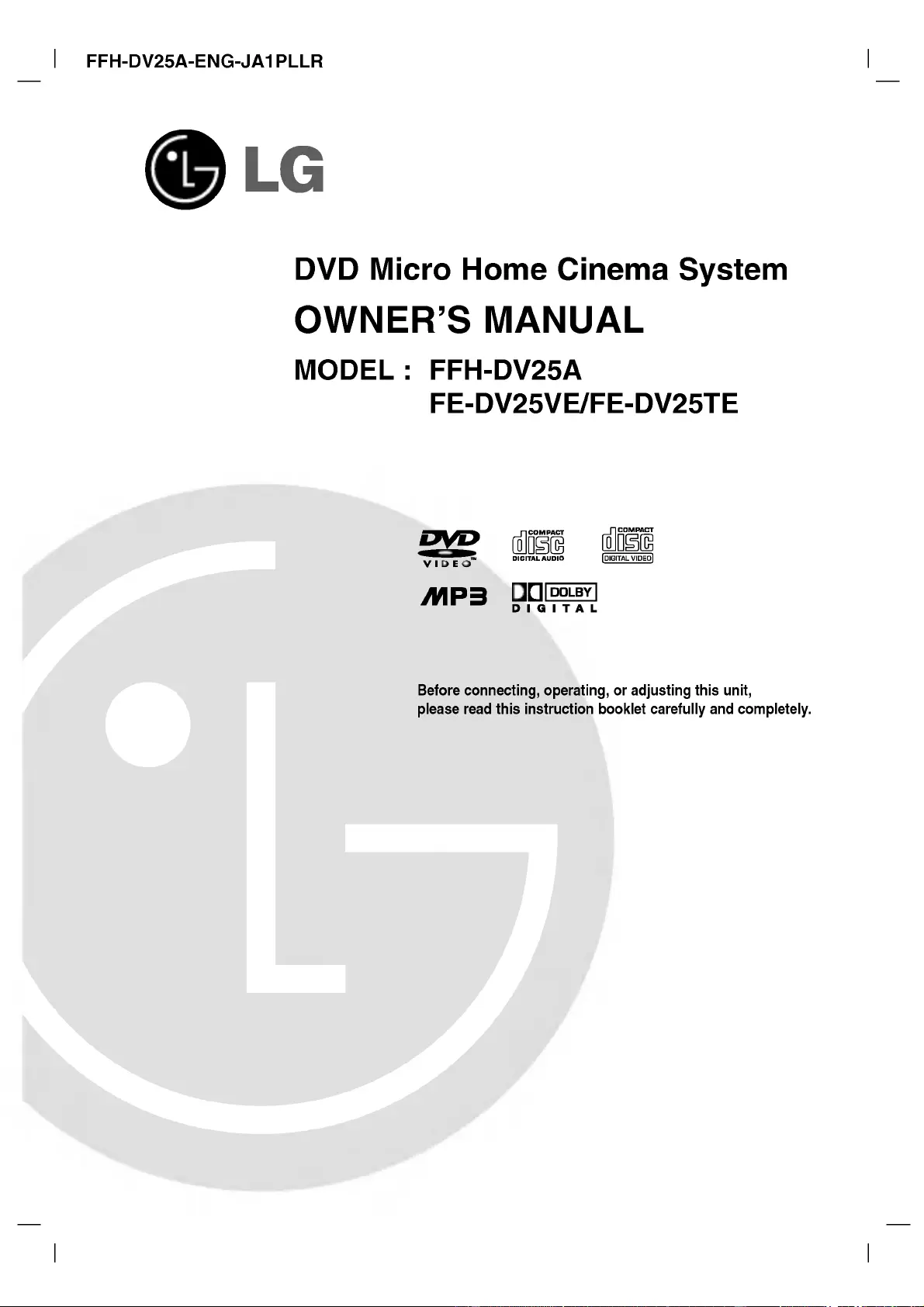 Hier is de LG F-DV25A (Home cinema set) gebruikershandleiding. 51 pagina's in taal met een gewicht van 8,069,180.0 Mb. Als u geen antwoorden op uw probleem kunt vinden Vraag het onze community.