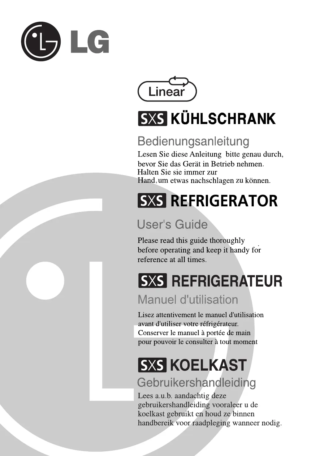 Hier is de LG GR-P247CNNV (Vriezer) gebruikershandleiding. 41 pagina's in taal Nederlands met een gewicht van 4,998,650.0 Mb. Als u geen antwoorden op uw probleem kunt vinden Vraag het onze community.