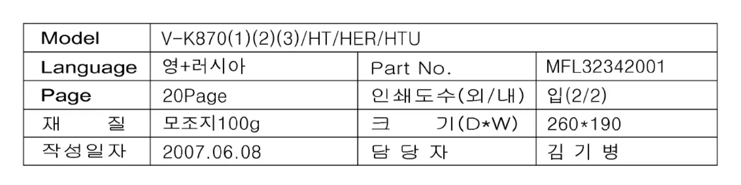 LG V-K8701HER Handleiding