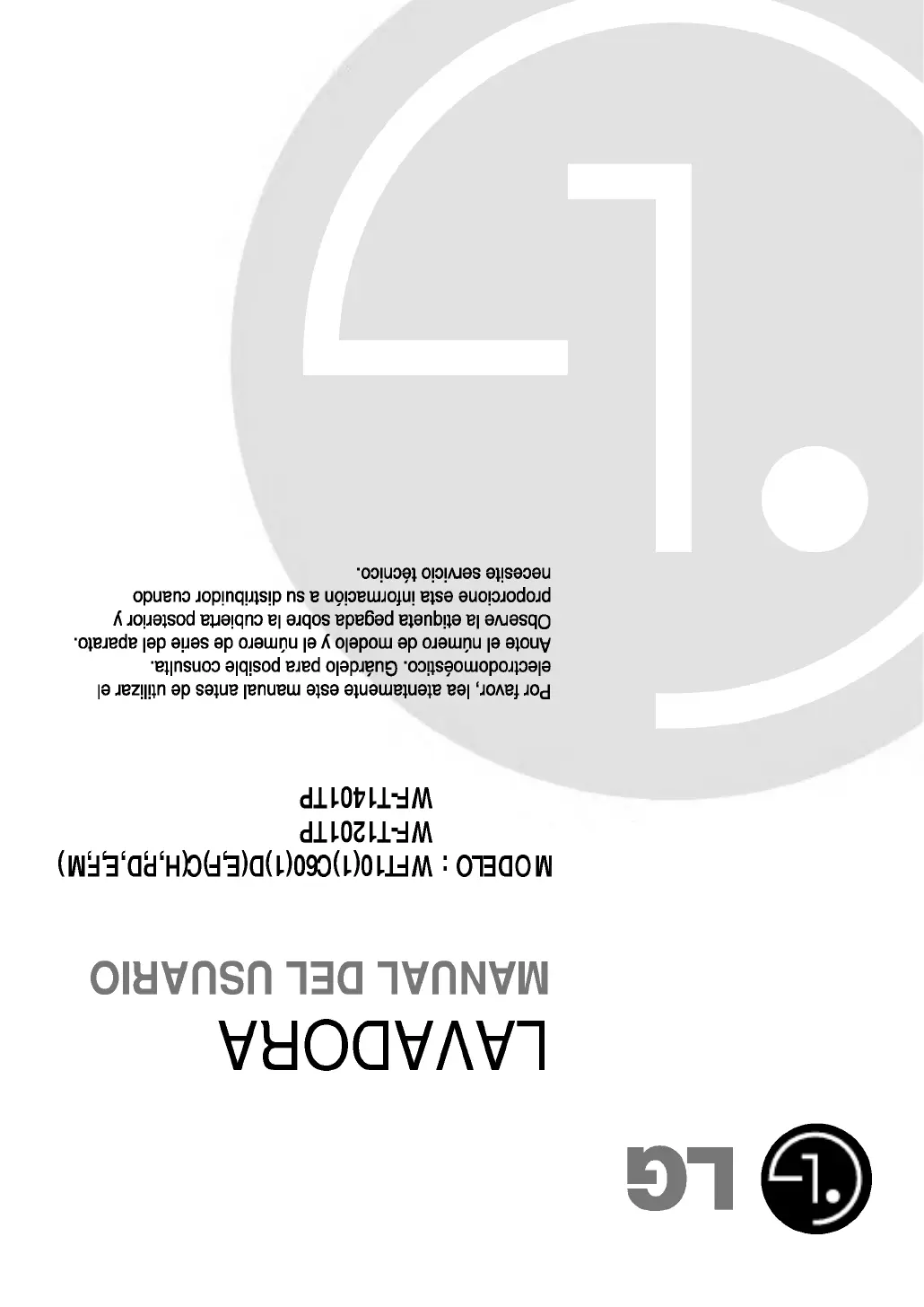 Hier is de LG WF-T1492TP (Wasmachine) gebruikershandleiding. 72 pagina's in taal Engels met een gewicht van 10,356,000.0 Mb. Als u geen antwoorden op uw probleem kunt vinden Vraag het onze community.