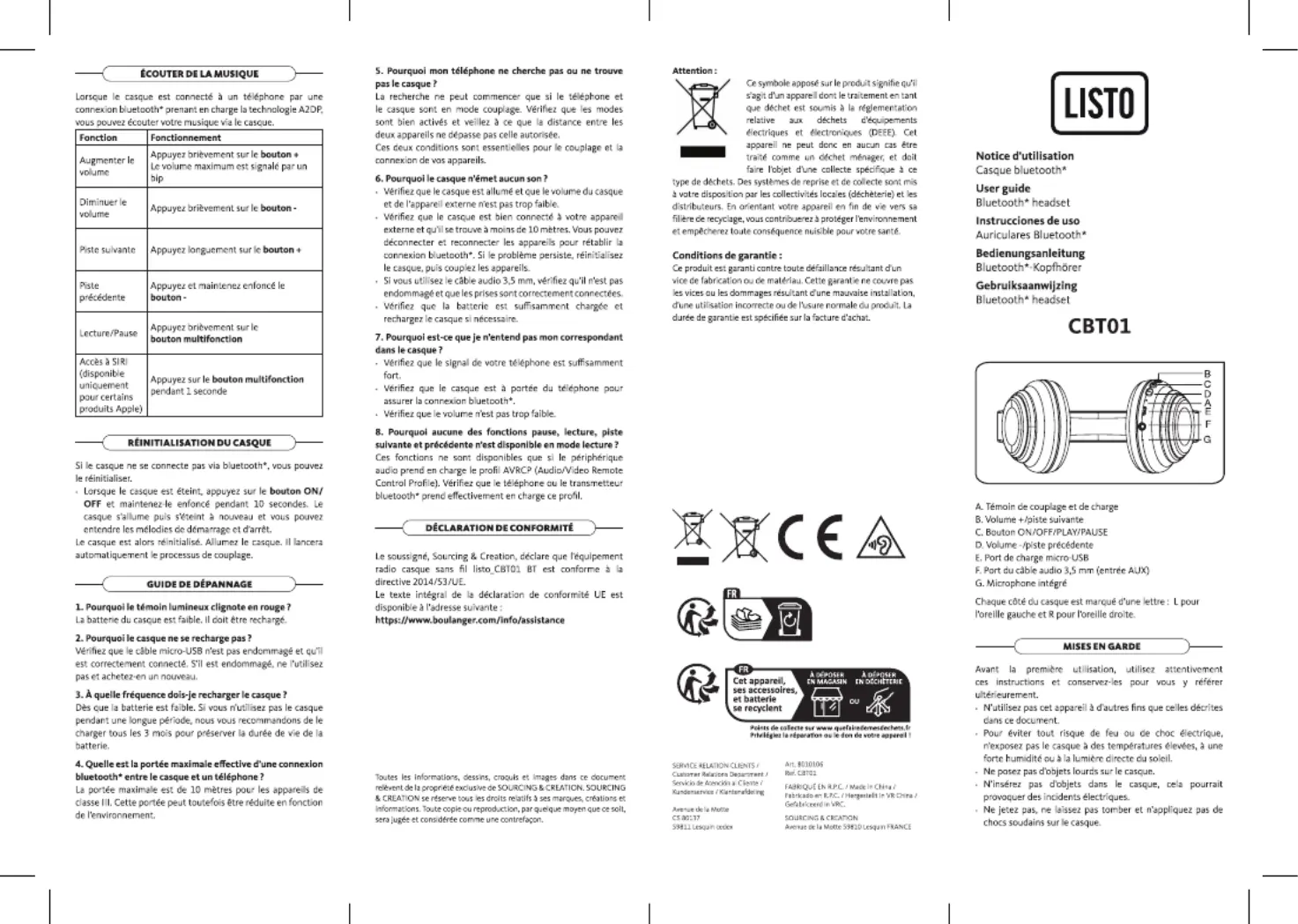 Hier is de Listo CBT01 (Hoofdtelefoon) gebruikershandleiding. 10 pagina's in taal met een gewicht van 1,931,620.0 Mb. Als u geen antwoorden op uw probleem kunt vinden Vraag het onze community.