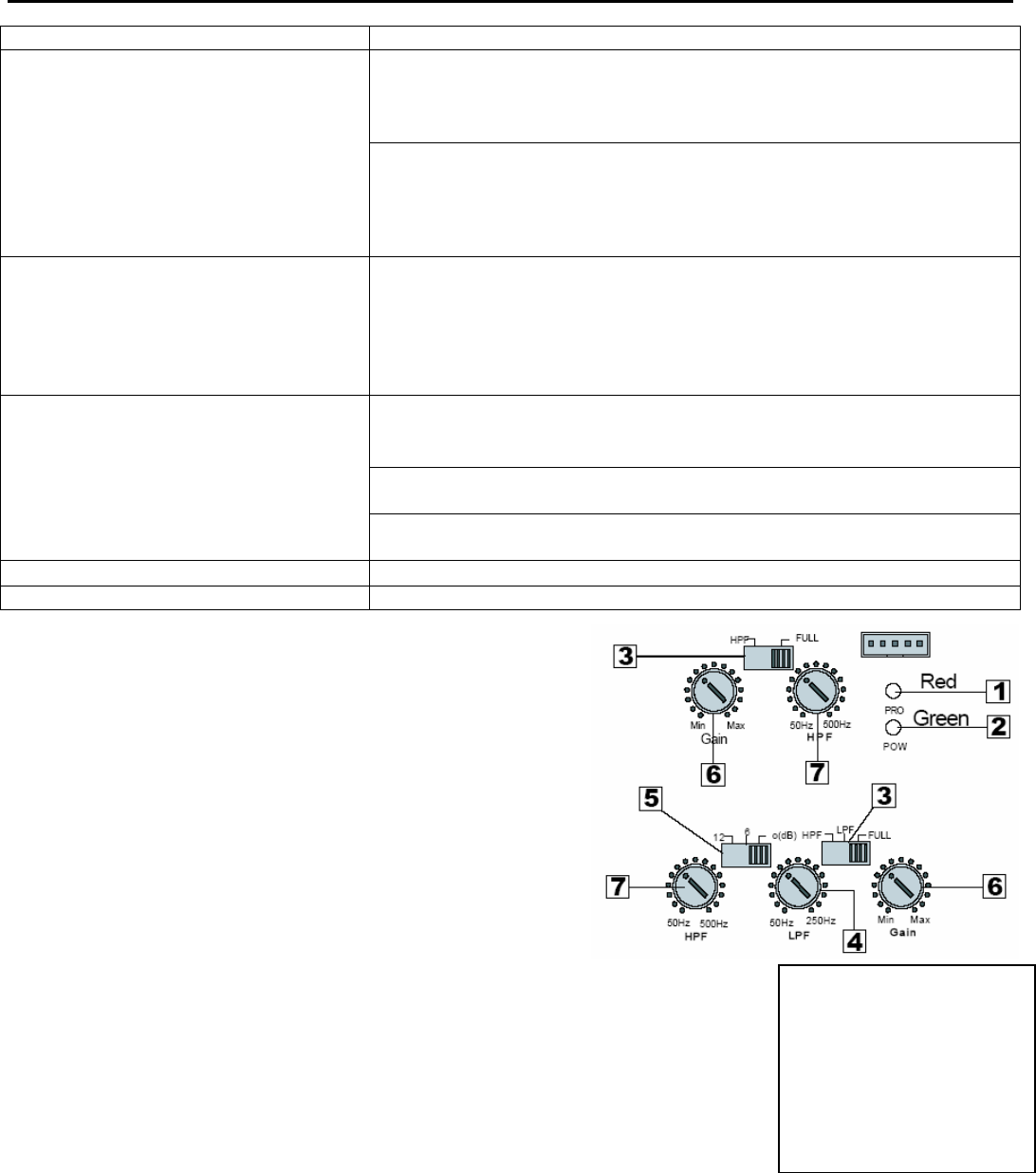 5. LAGE IMPULS niveau controleDraai deze controle voor verhoging van de frequenties