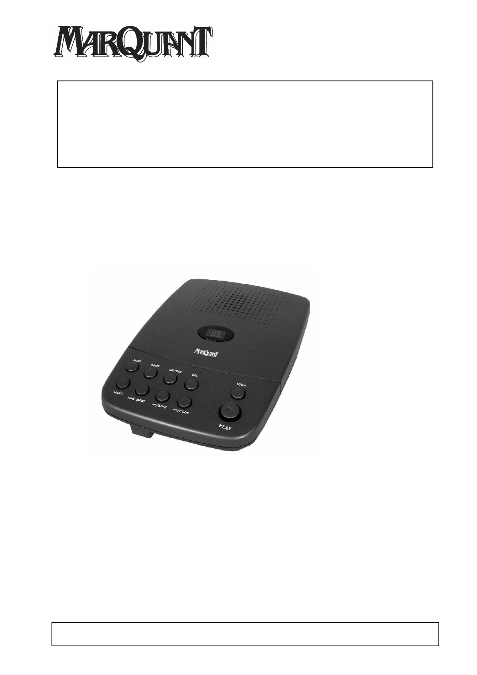 Hier is de Marquant DAM540 (Antwoordapparaat) gebruikershandleiding. 4 pagina's in taal Nederlands met een gewicht van 0.4 Mb. Als u geen antwoorden op uw probleem kunt vinden Vraag het onze community.
