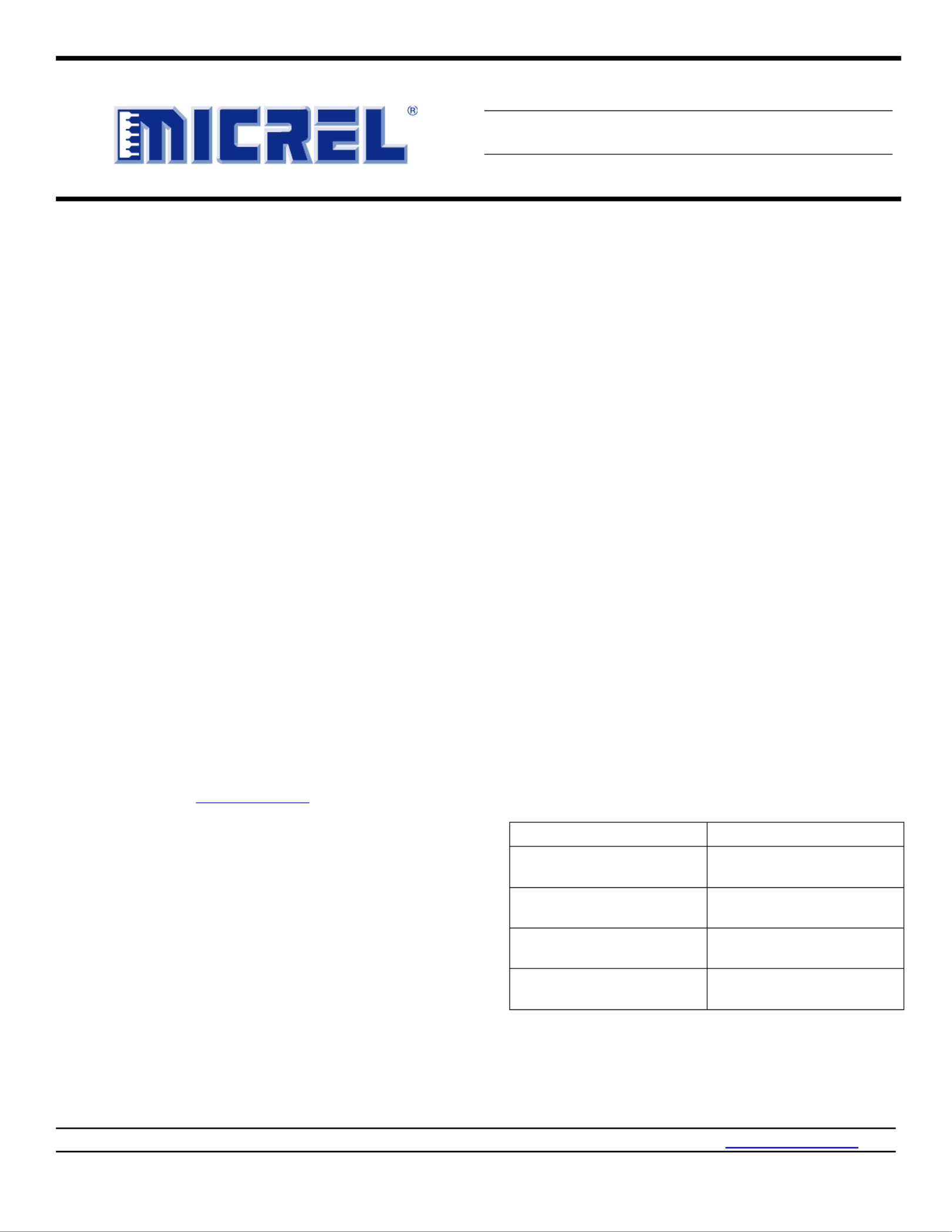 Micrel Inc. • 2180 Fortune Drive • San Jose, CA 95131 • USA • tel +1 (408) 944-0800 • fax + 1 (408) 474-1000 • http://www.micrel.com