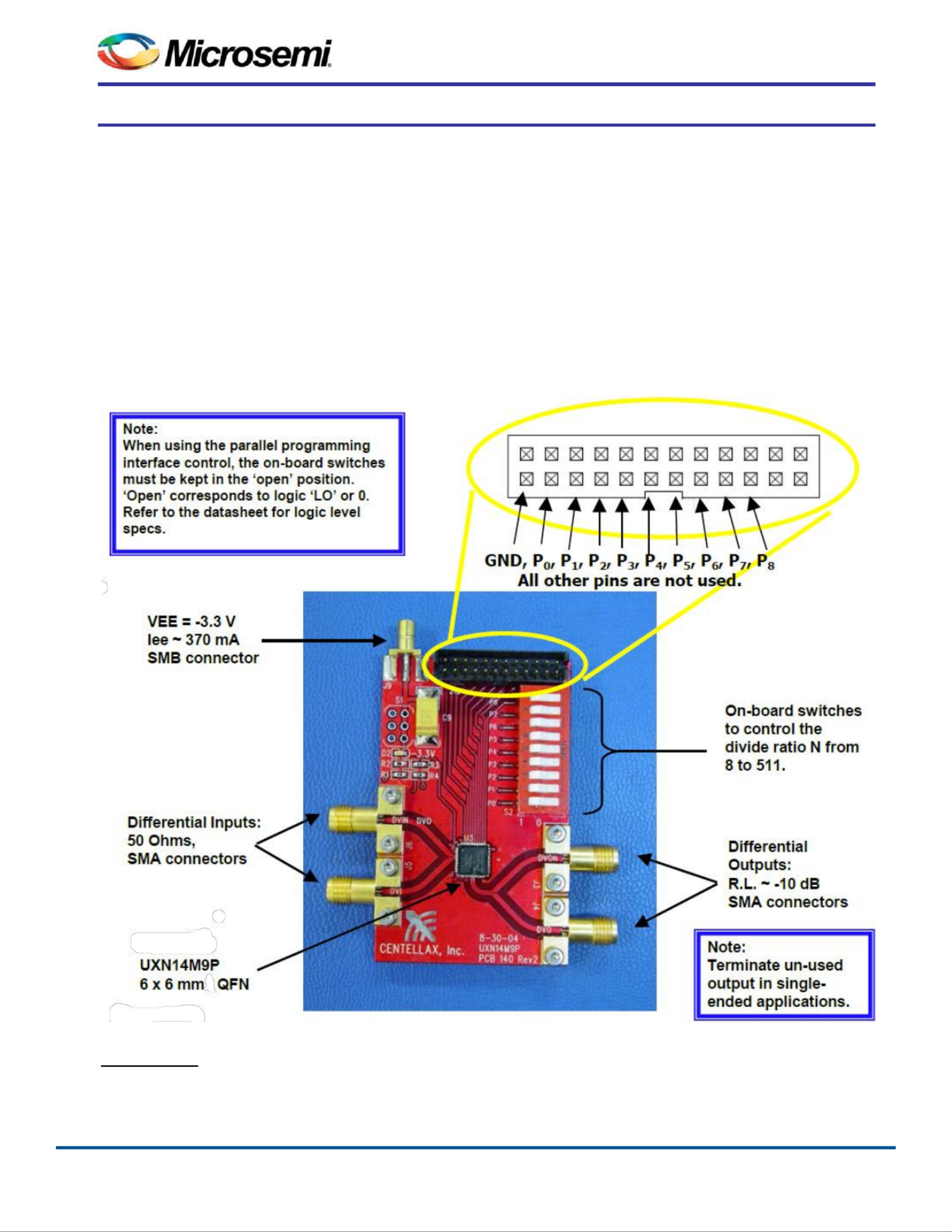 UXN14M9PE is an evaluation board for the UXN14M9P DC-14 GHz programmable integer